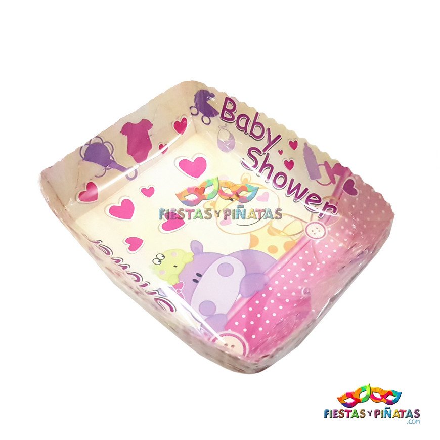 Bandeja para ponqué temática decoración Baby Shower Rosado, ideal para alimentos – torta.