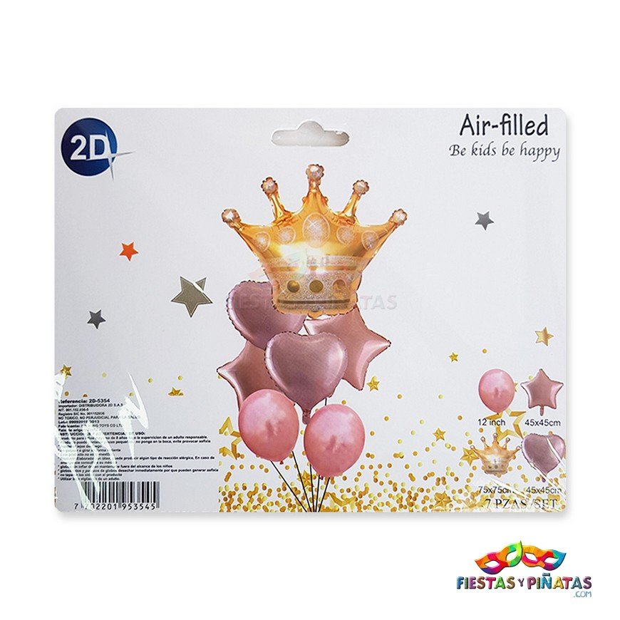 Bouquet corona dorada estrellas oro rosa globos metalizados.
