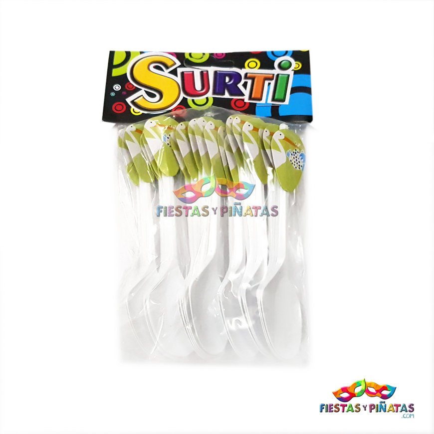 Cucharitas desechables para ponqué, pastel, torta, postres y más alimentos, Baby Shower Cigueña verde.
