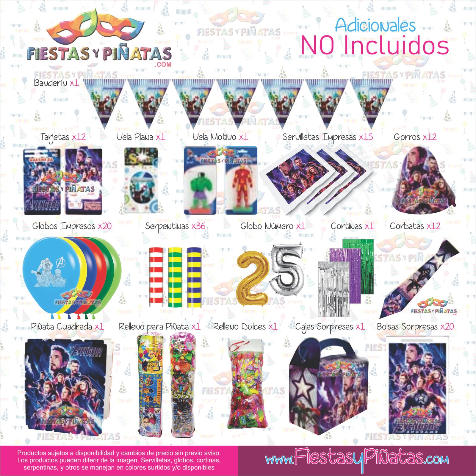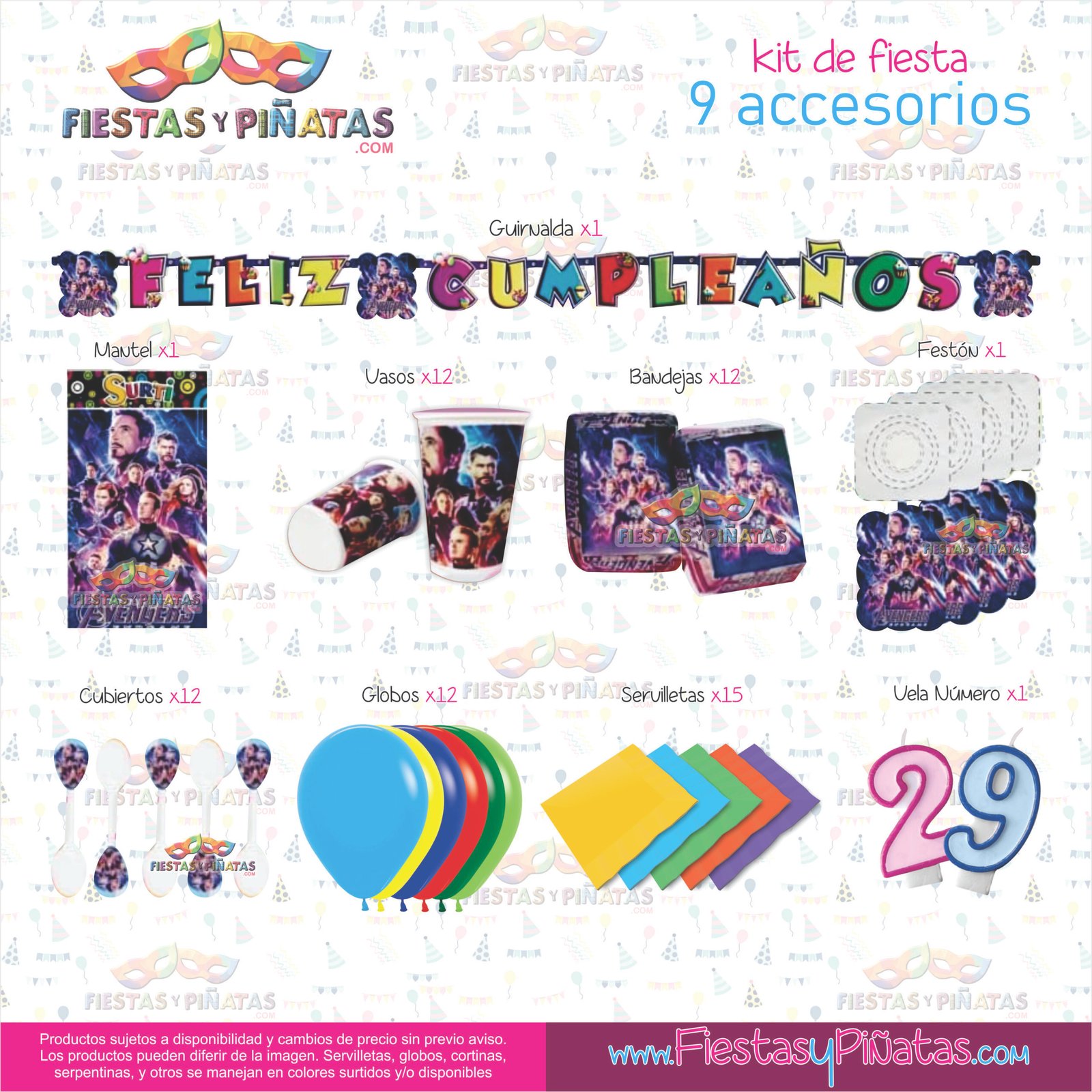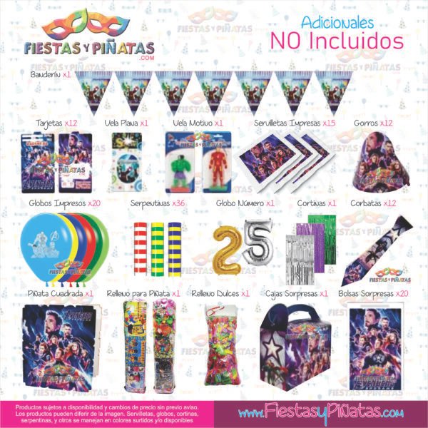 KIT CUMPLEAÑOS AVENGERS – LOS VENGADORES – DECORACIÓN FIESTAS Y PIÑATAS – 9 ACCESORIOS