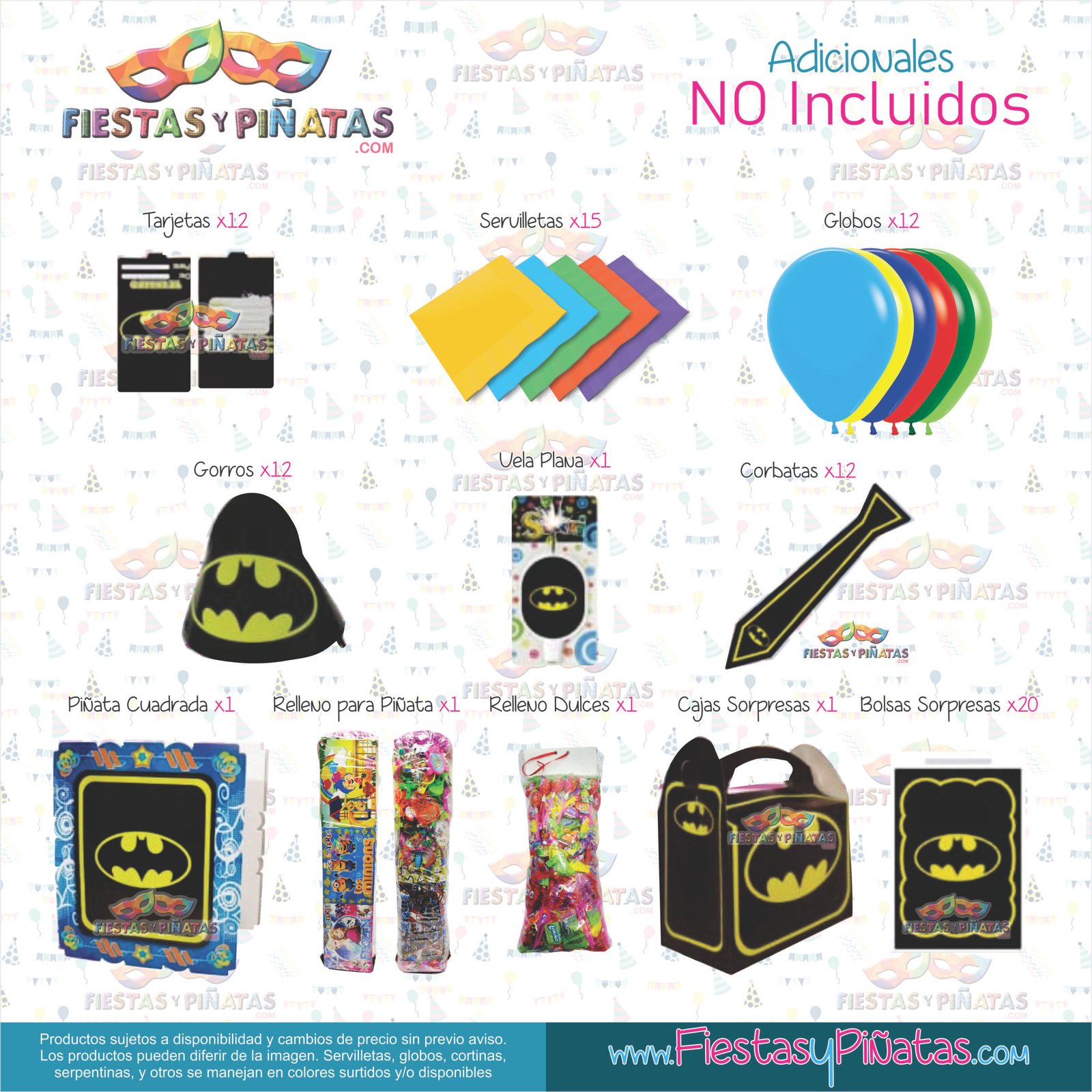 KIT CUMPLEAÑOS BATMAN ESCUDO– DECORACIÓN FIESTAS Y PIÑATAS – 14 ACCESORIOS
