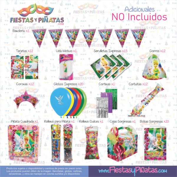 KIT CUMPLEAÑOS CAMPANITA – TINKER-BELL – DECORACIÓN FIESTAS Y PIÑATAS 11 ACCESORIOS