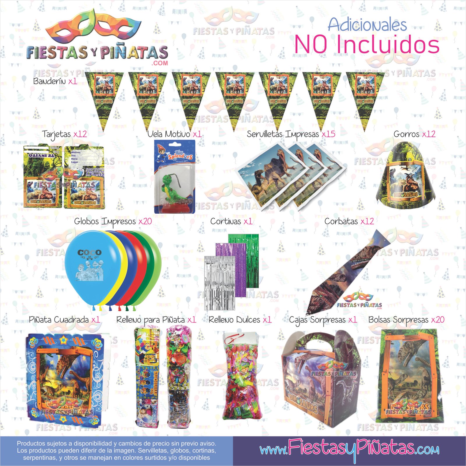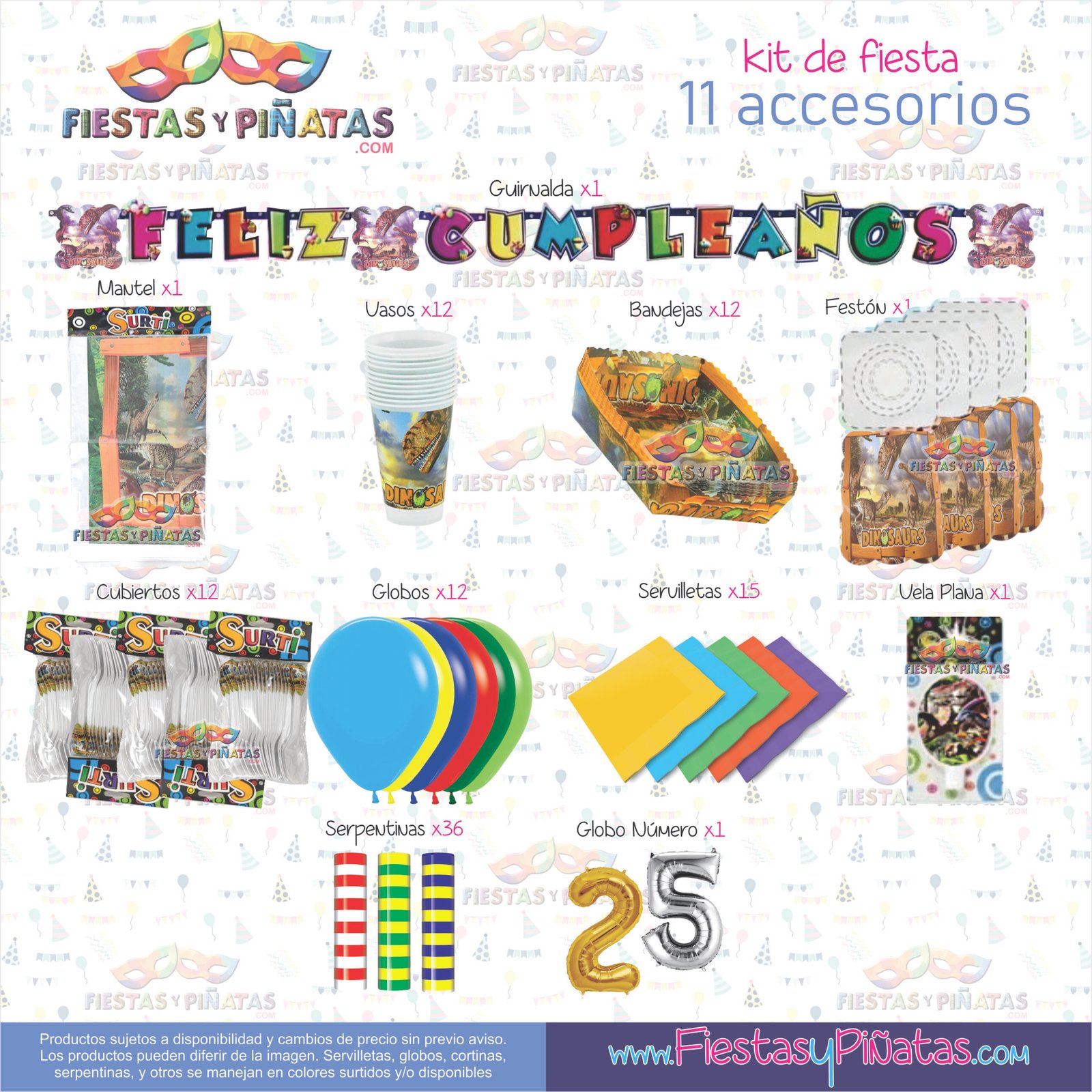 KIT CUMPLEAÑOS DINOSAURIOS– DECORACIÓN FIESTAS Y PIÑATAS – 11 ACCESORIOS