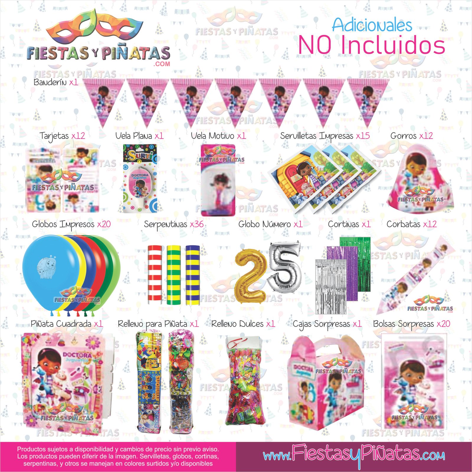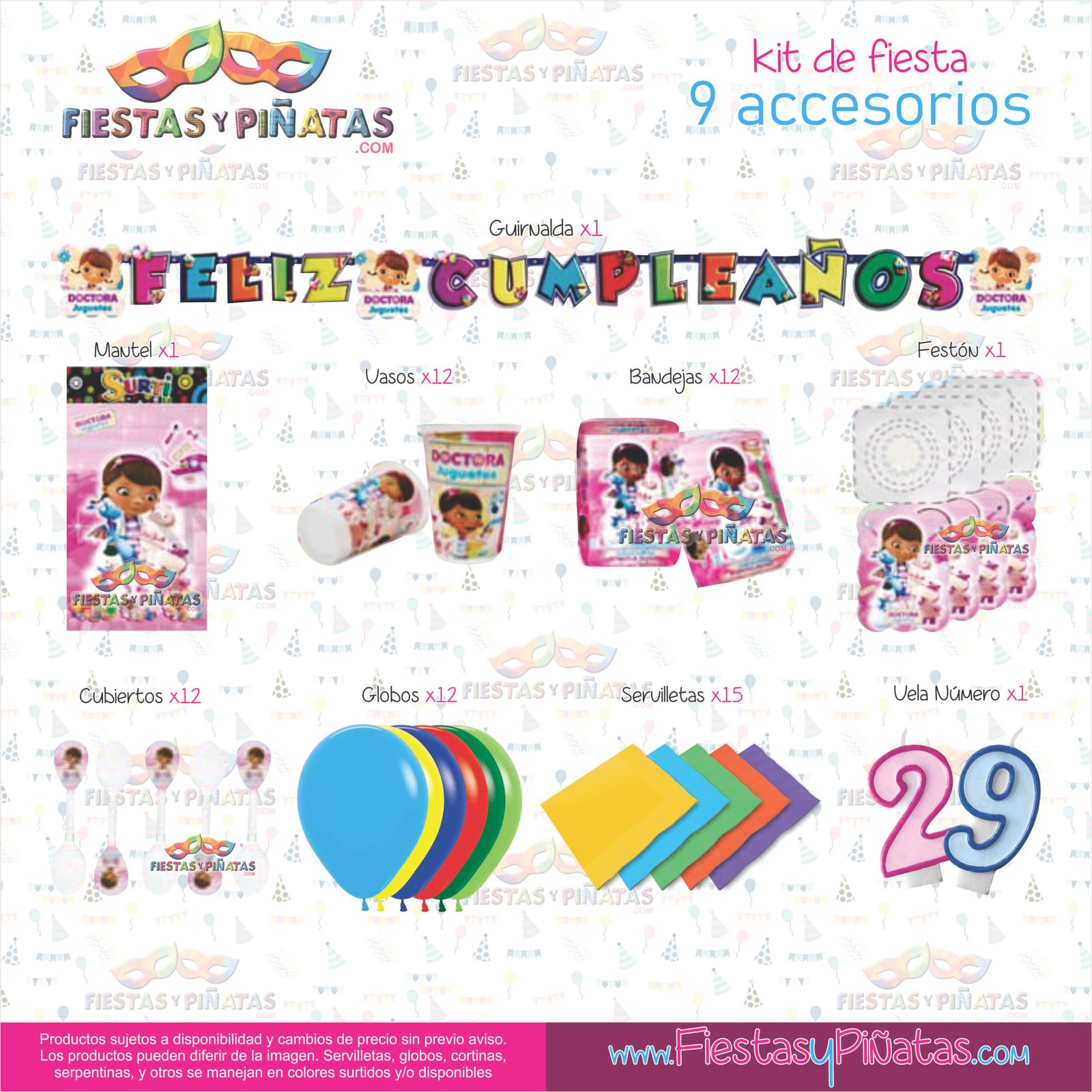 KIT CUMPLEAÑOS DOCTORA JUGUETES – DECORACIÓN FIESTAS Y PIÑATAS – 9 ACCESORIOS