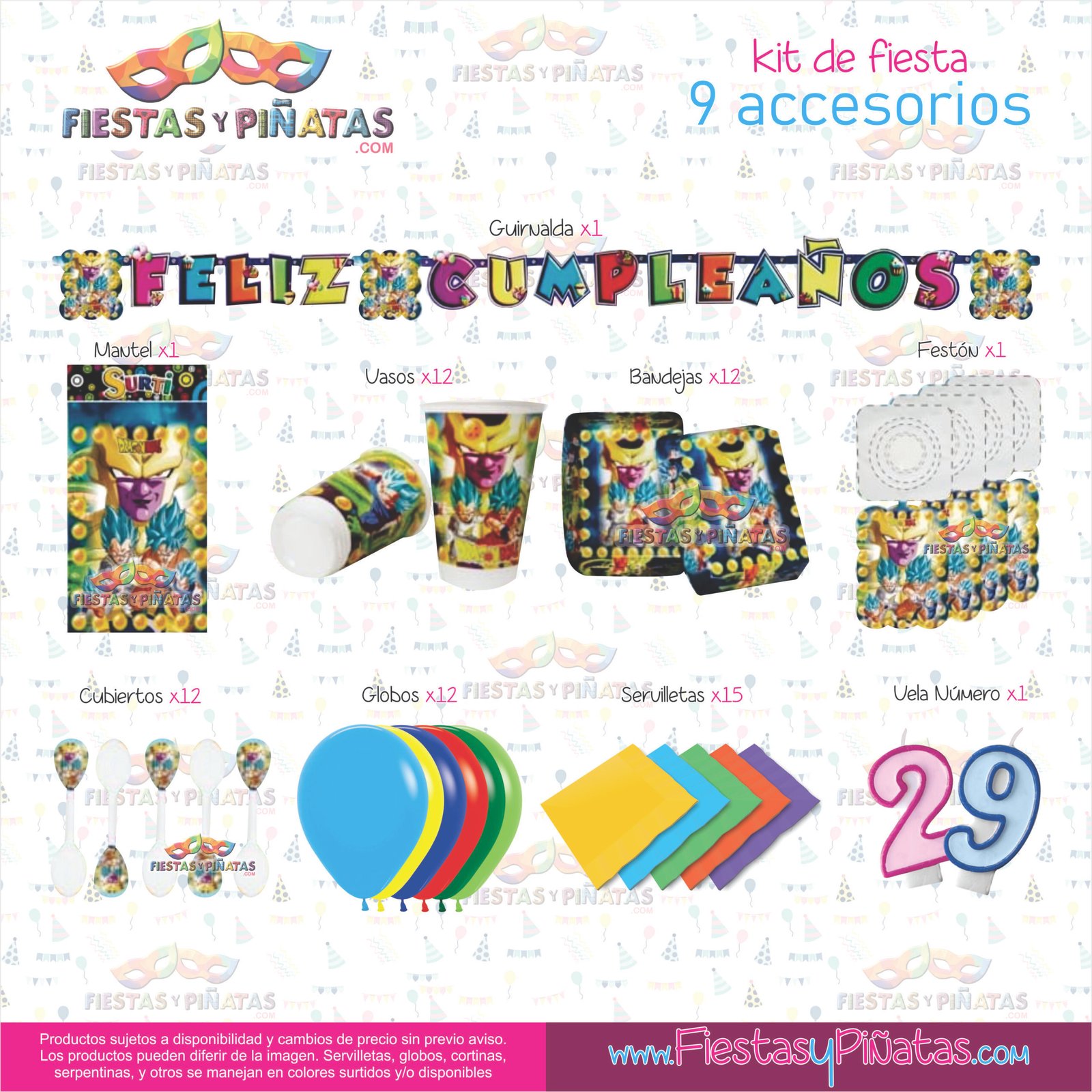 KIT CUMPLEAÑOS DRAGON BALL– DECORACIÓN FIESTAS Y PIÑATAS – 9 ACCESORIOS