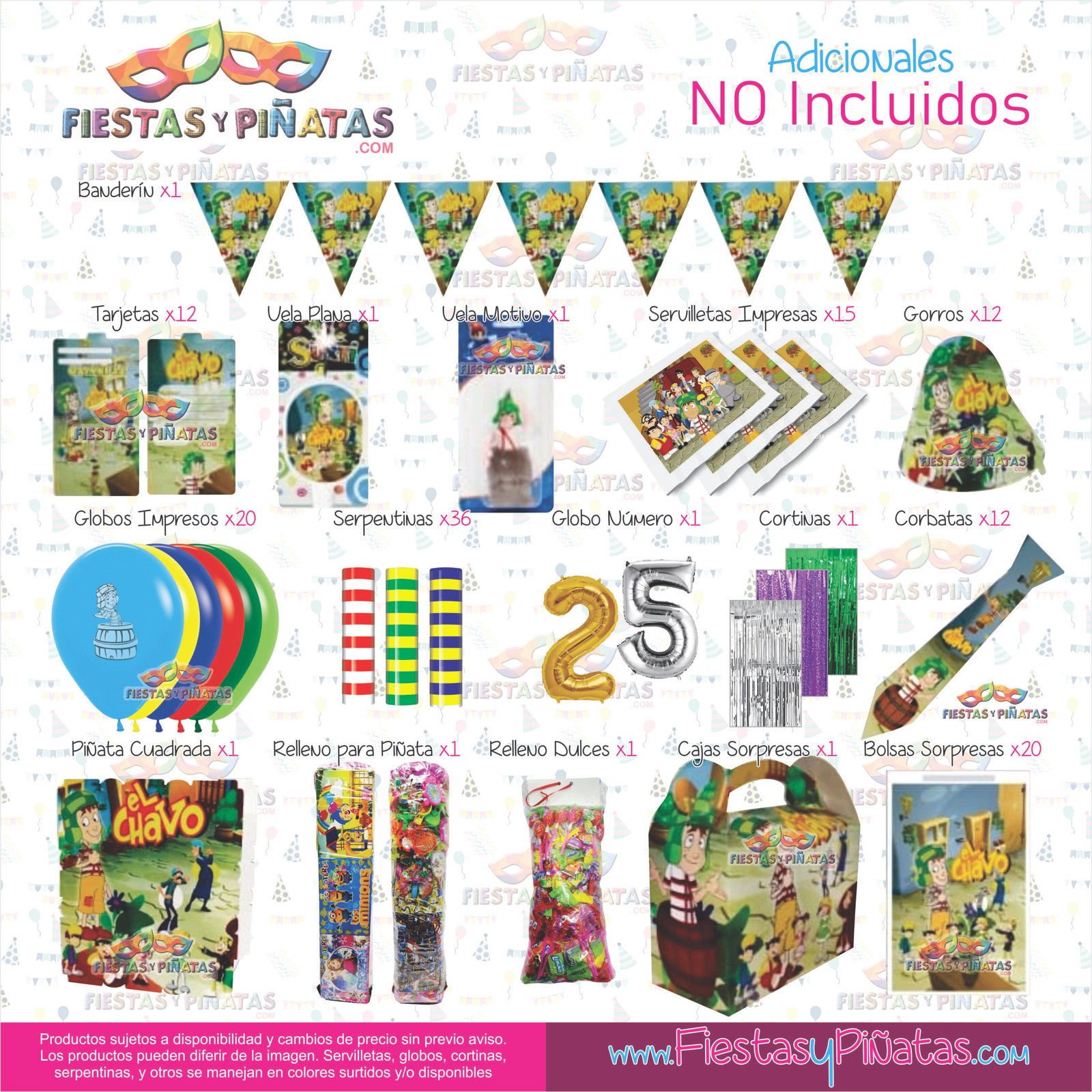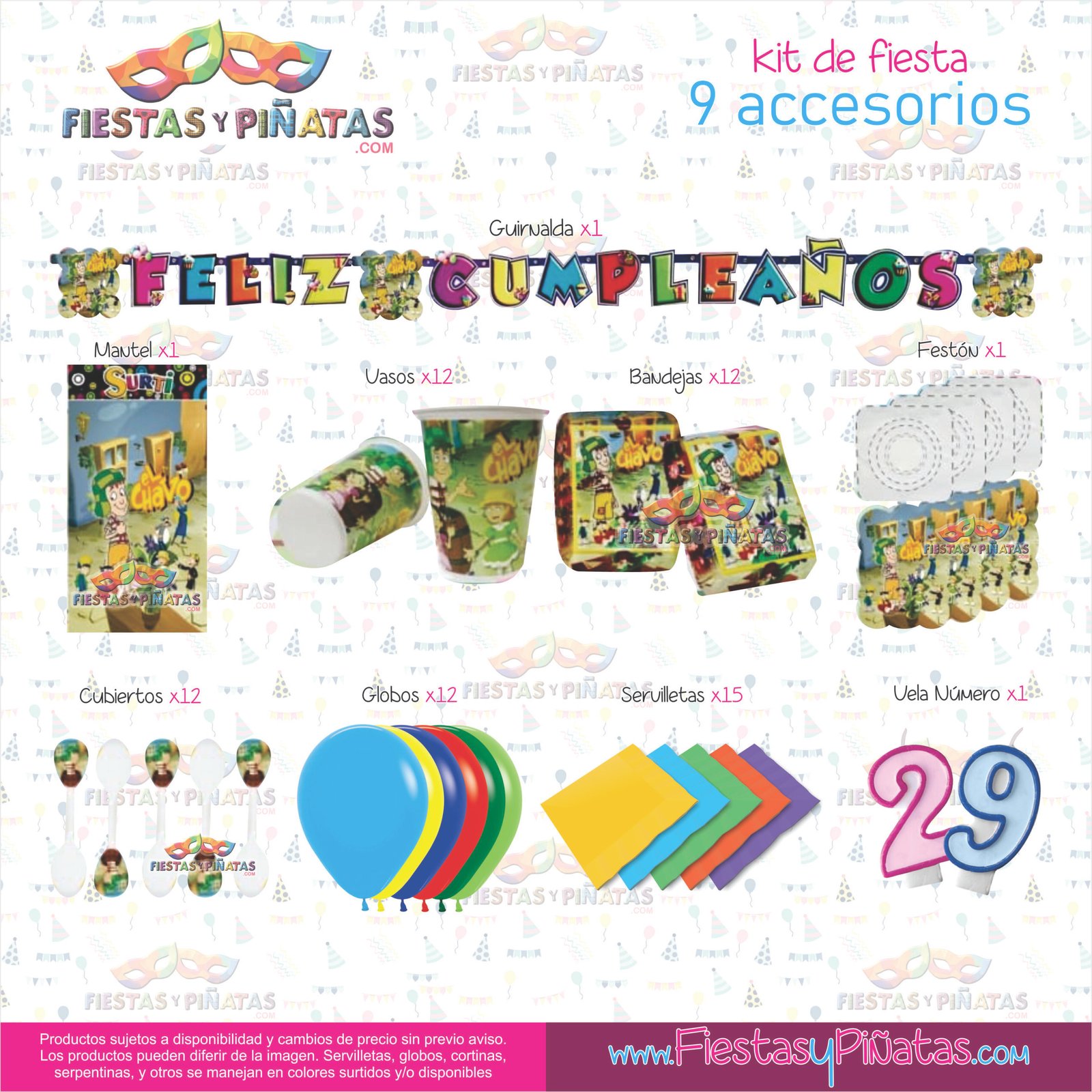 KIT CUMPLEAÑOS EL CHAVO – DECORACIÓN FIESTAS Y PIÑATAS – 9 ACCESORIOS