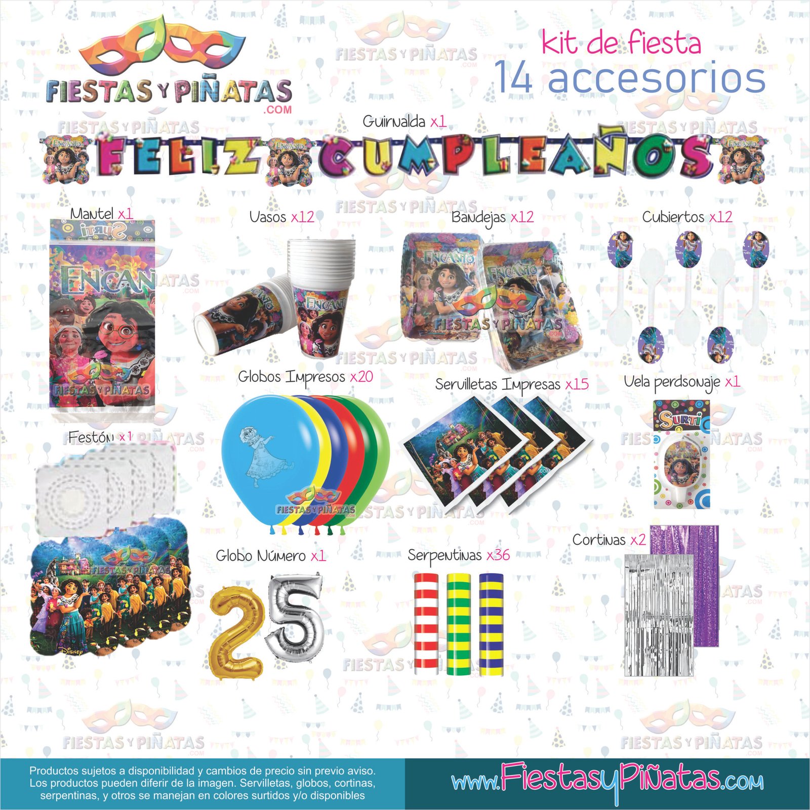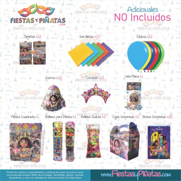 KIT CUMPLEAÑOS ENCANTO – DECORACIÓN FIESTAS Y PIÑATAS – 14 ACCESORIOS