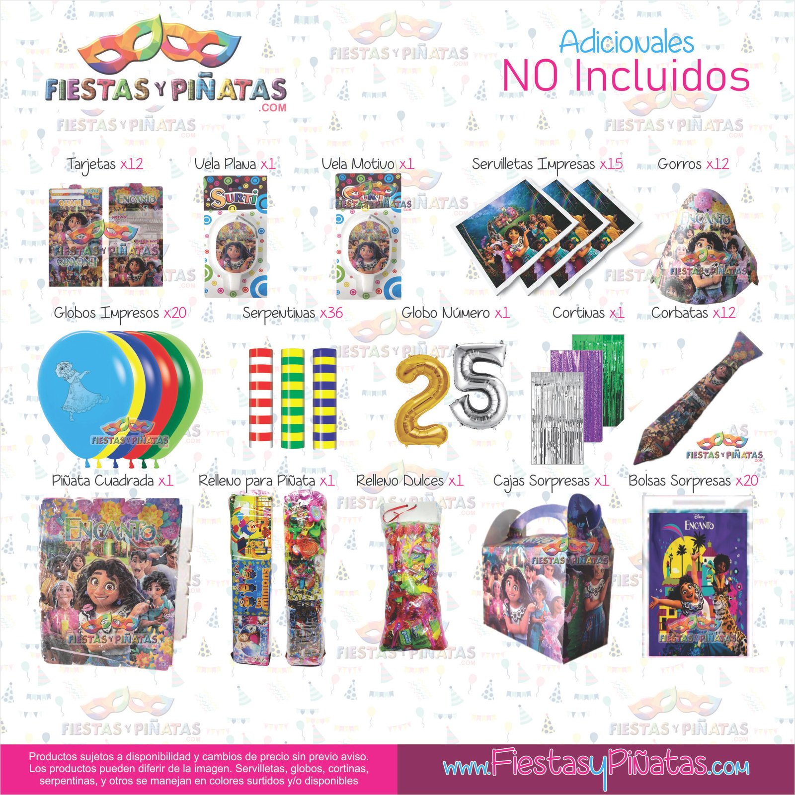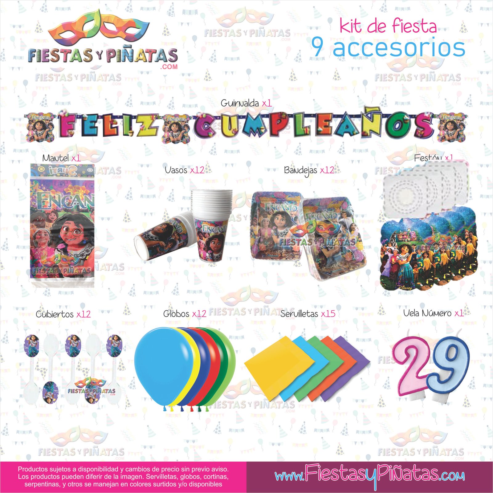 KIT CUMPLEAÑOS ENCANTO – DECORACIÓN FIESTAS Y PIÑATAS – 9 ACCESORIOS