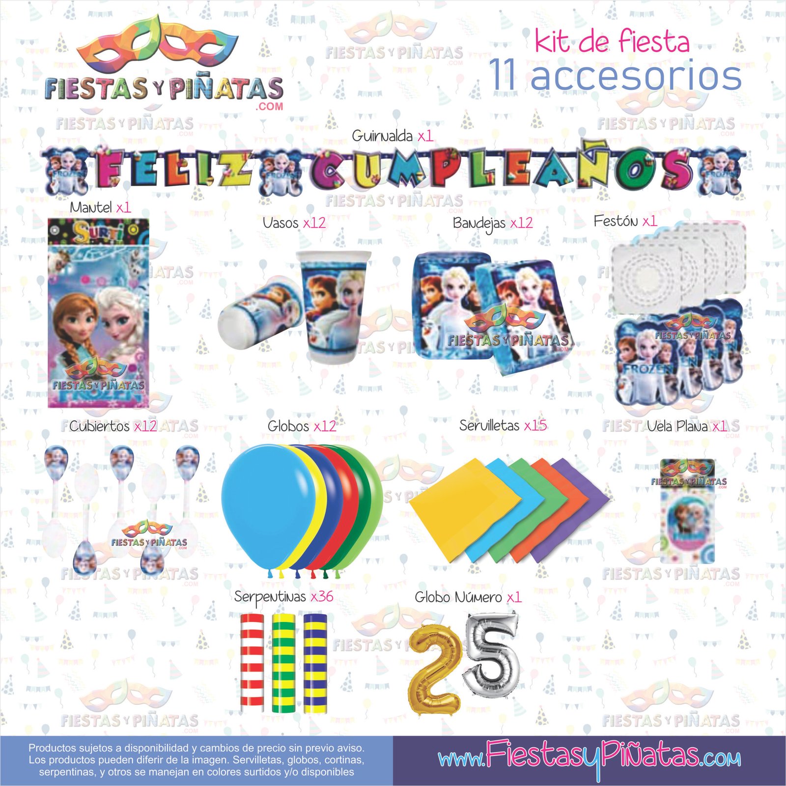 KIT CUMPLEAÑOS FROZEN – DECORACIÓN FIESTAS Y PIÑATAS – 11 ACCESORIOS