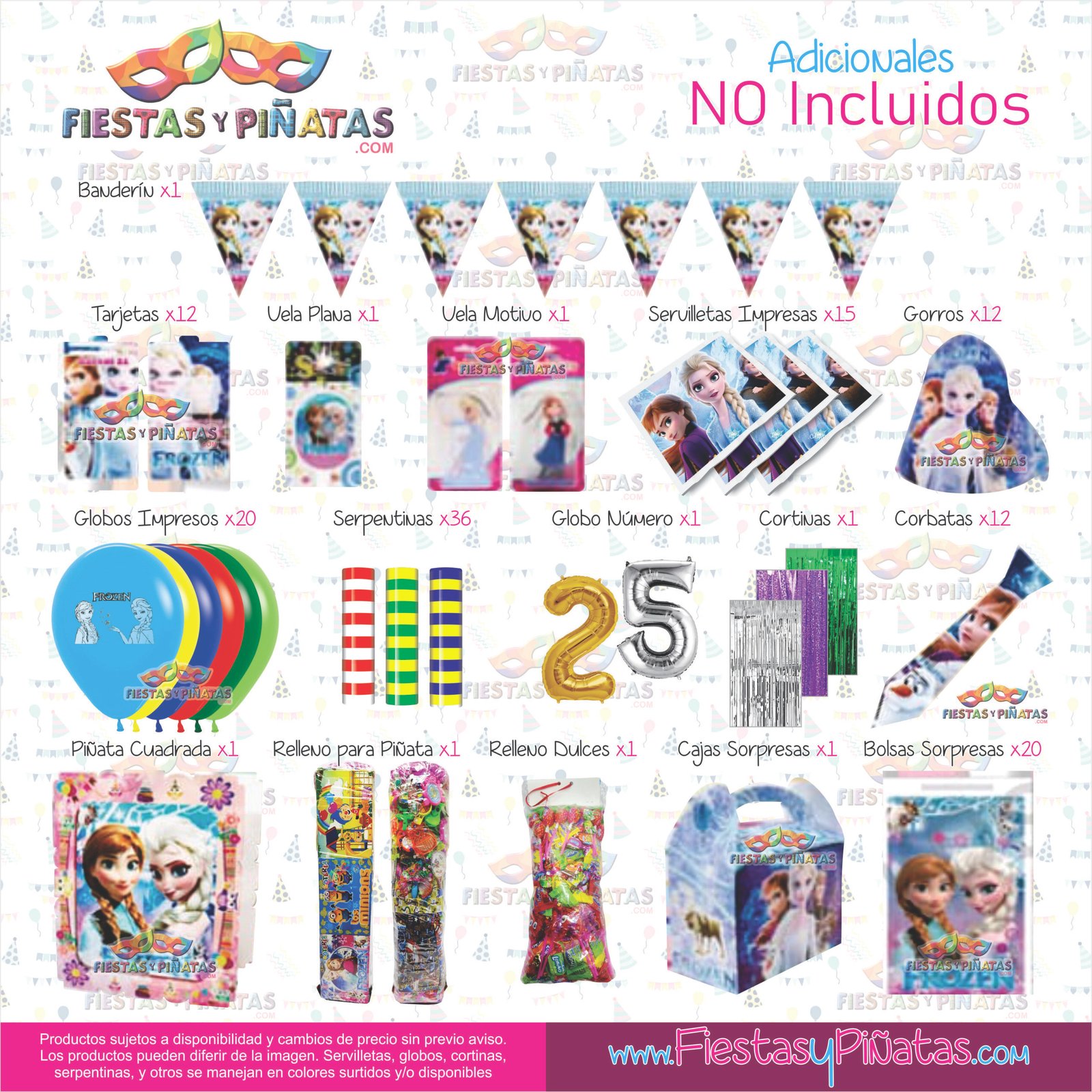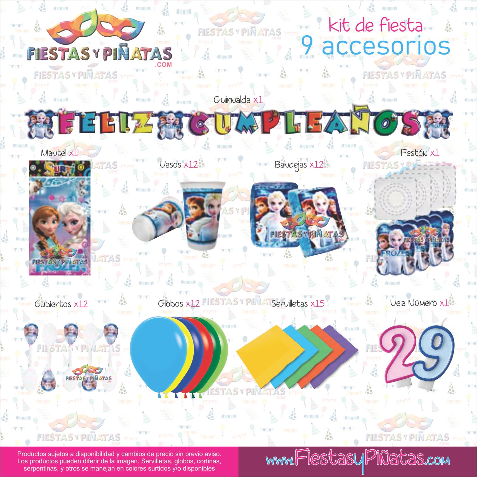 KIT CUMPLEAÑOS FROZEN – DECORACIÓN FIESTAS Y PIÑATAS – 9 ACCESORIOS