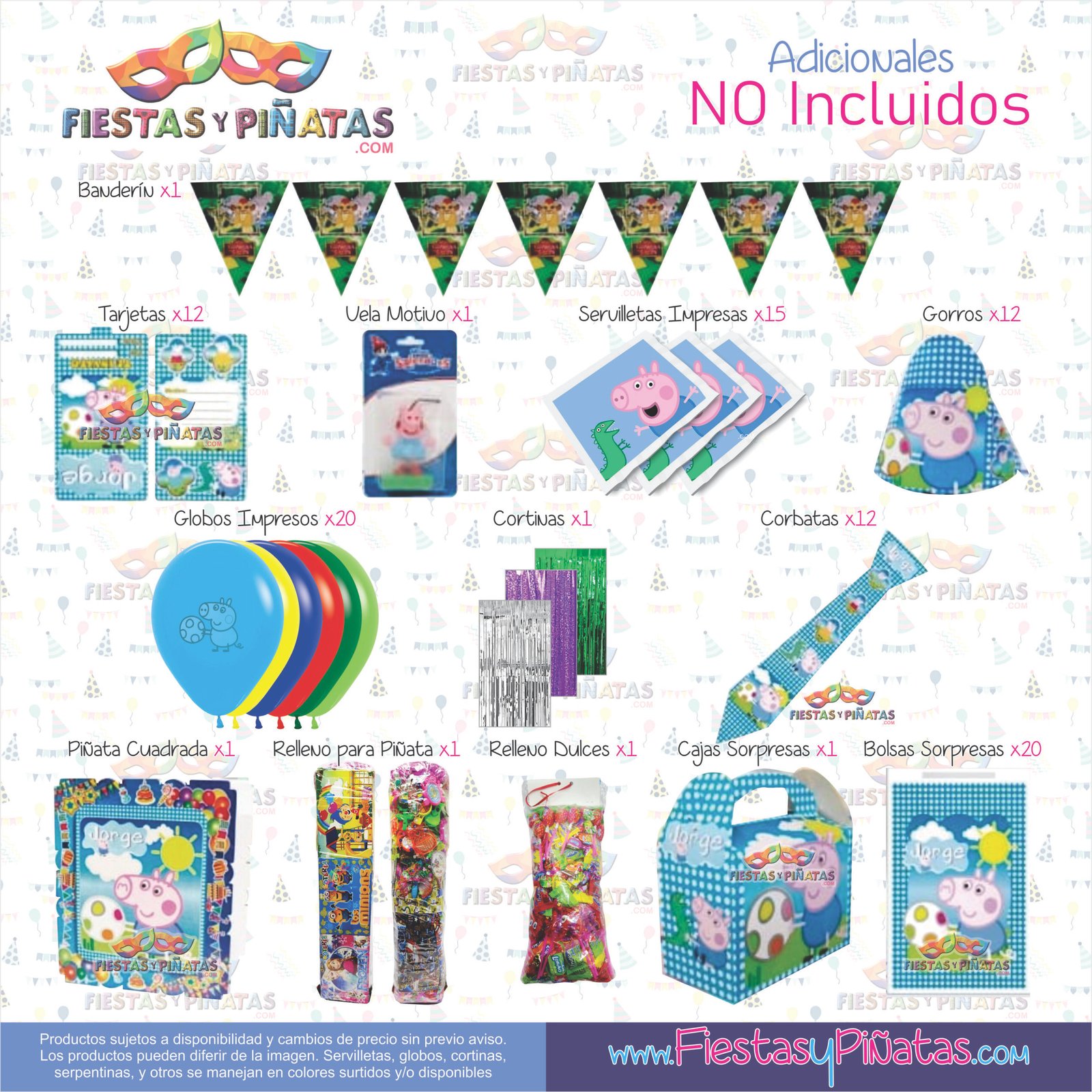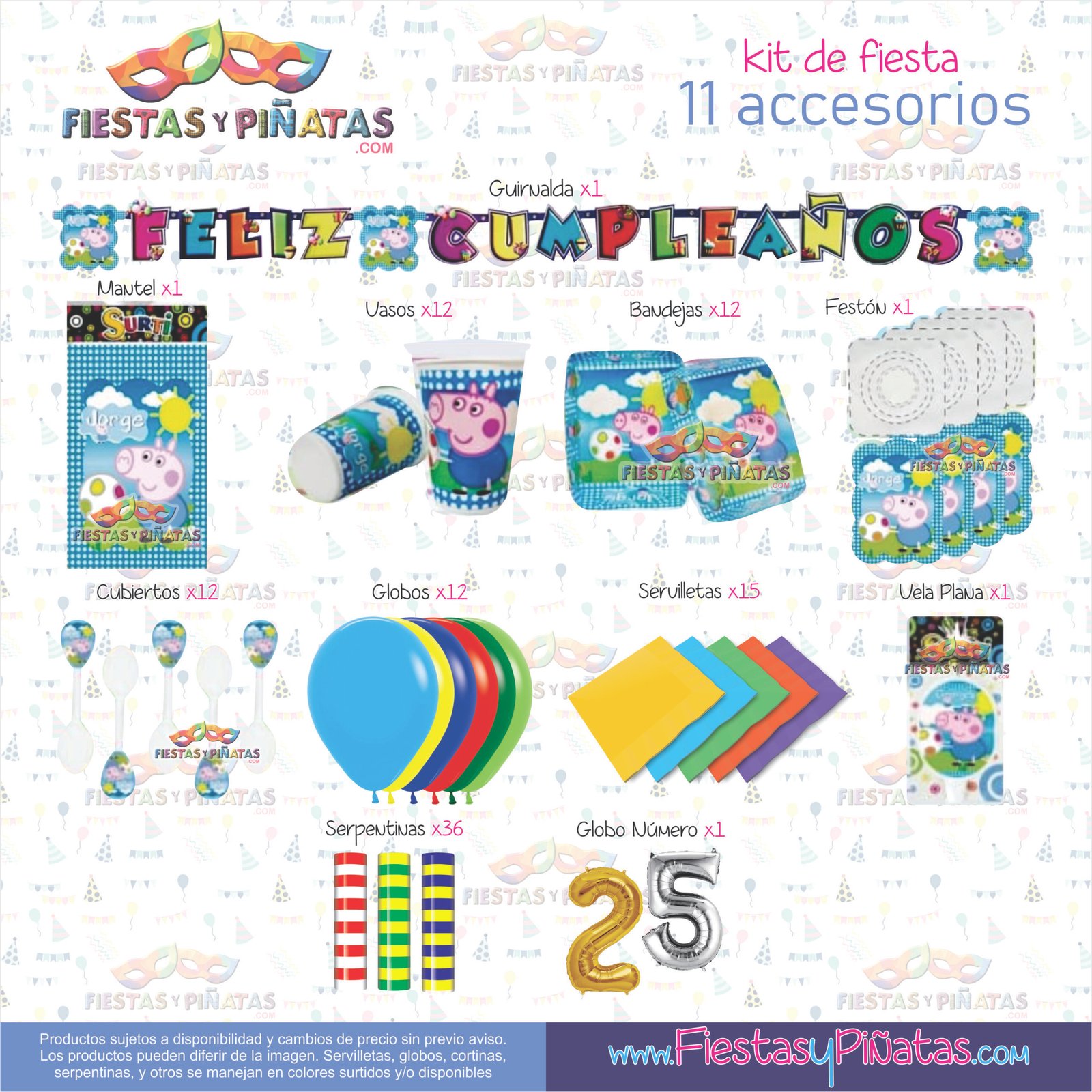 KIT CUMPLEAÑOS GEORGE PEPPA PIG– DECORACIÓN FIESTAS Y PIÑATAS – 11 ACCESORIOS