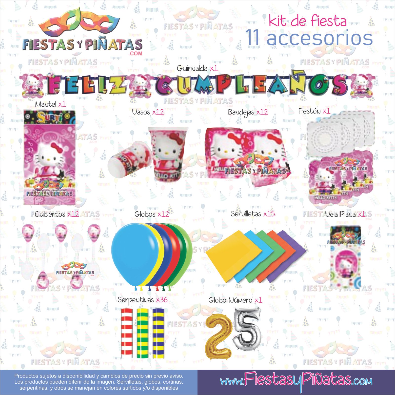KIT CUMPLEAÑOS HELLO KITTY – DECORACIÓN FIESTAS Y PIÑATAS – 11 ACCESORIOS