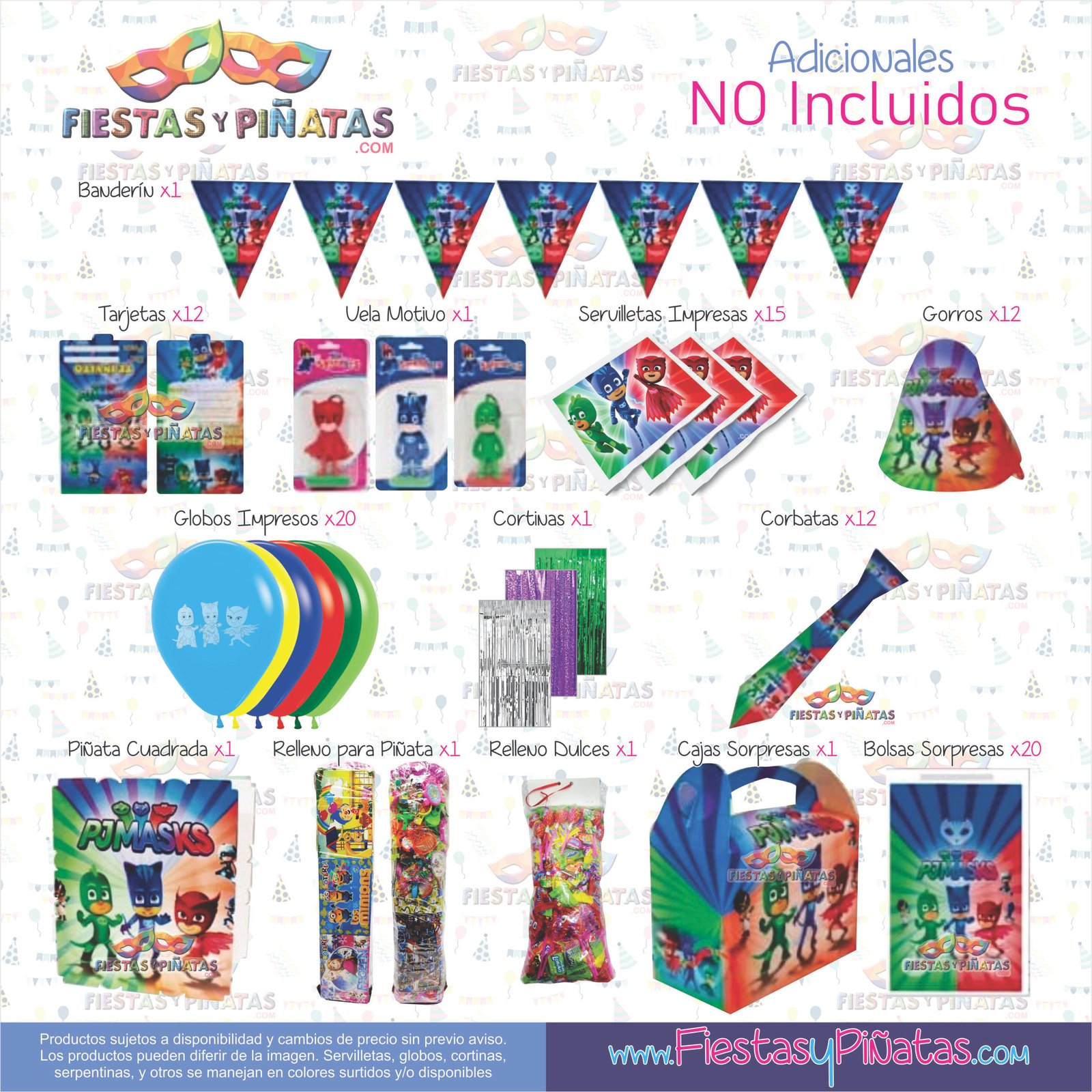 KIT CUMPLEAÑOS HEROES EN PIJAMAS– DECORACIÓN FIESTAS Y PIÑATAS – 11 ACCESORIOS