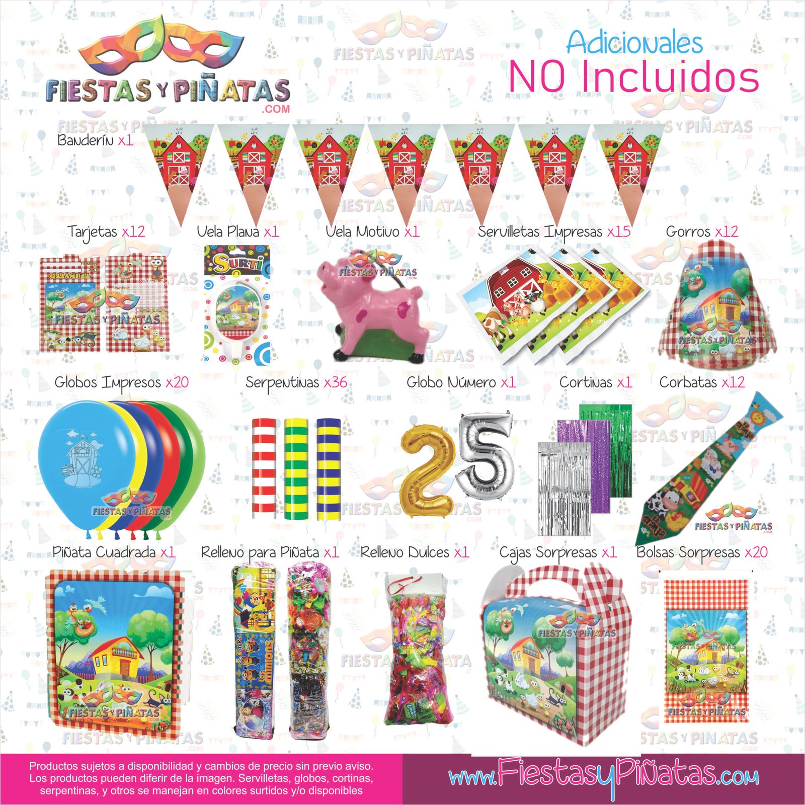 KIT CUMPLEAÑOS LA GRANJA ANIMALES– DECORACIÓN FIESTAS Y PIÑATAS – 9 ACCESORIOS