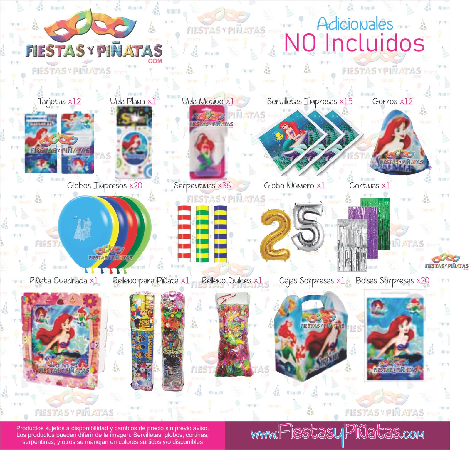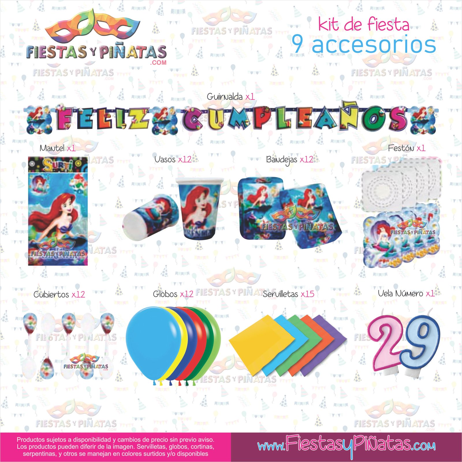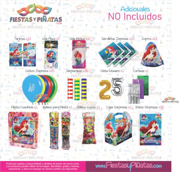 KIT CUMPLEAÑOS LA SIRENITA – DECORACIÓN FIESTAS Y PIÑATAS – 9 ACCESORIOS