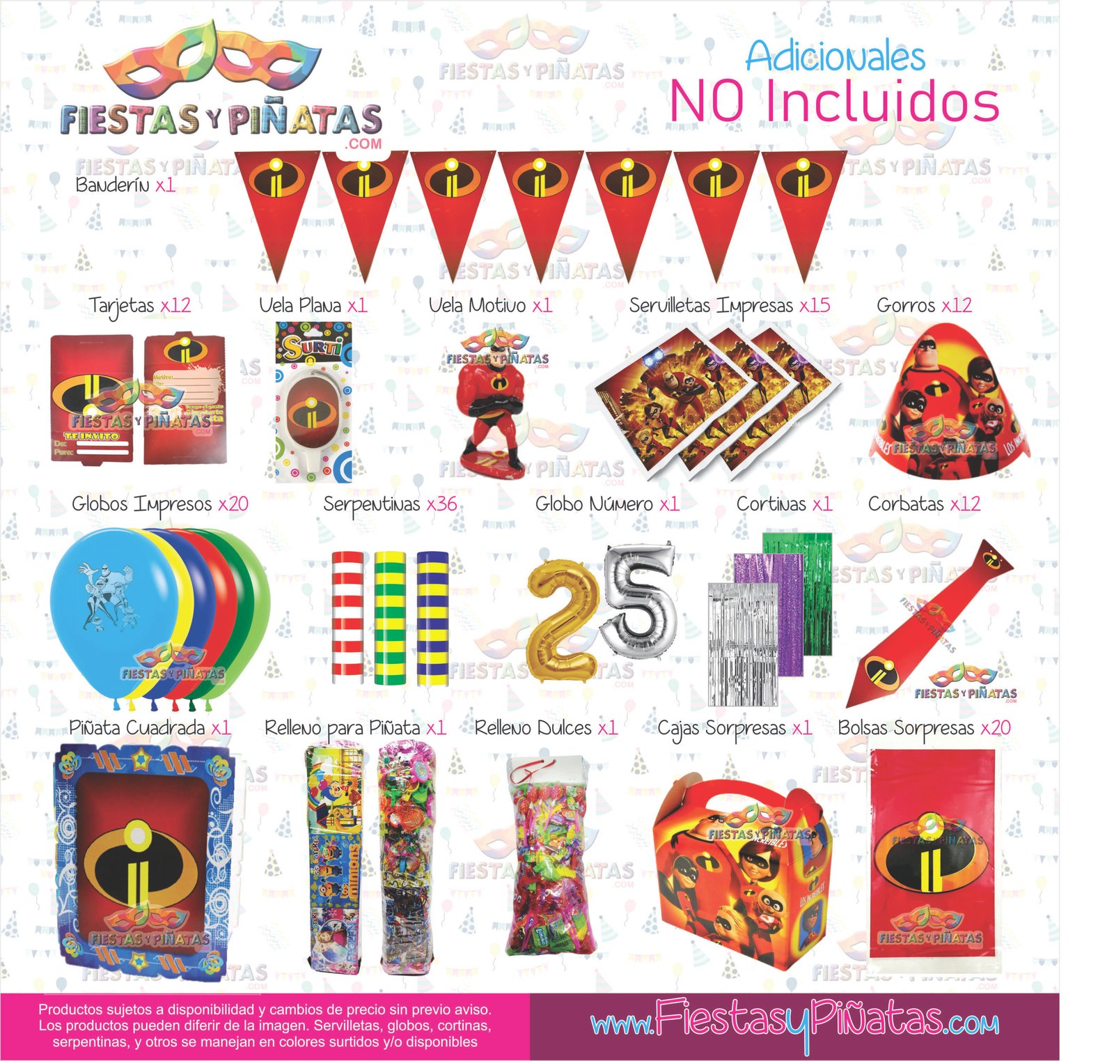 KIT CUMPLEAÑOS LOS INCREIBLES– DECORACIÓN FIESTAS Y PIÑATAS – 9 ACCESORIOS