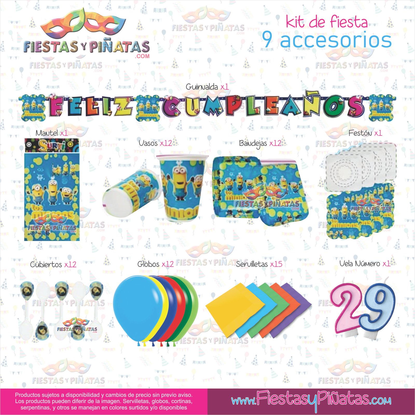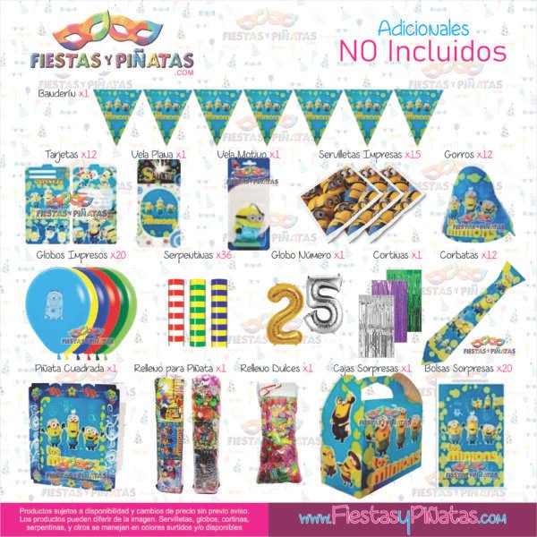 KIT CUMPLEAÑOS LOS MINIONS– DECORACIÓN FIESTAS Y PIÑATAS – 9 ACCESORIOS