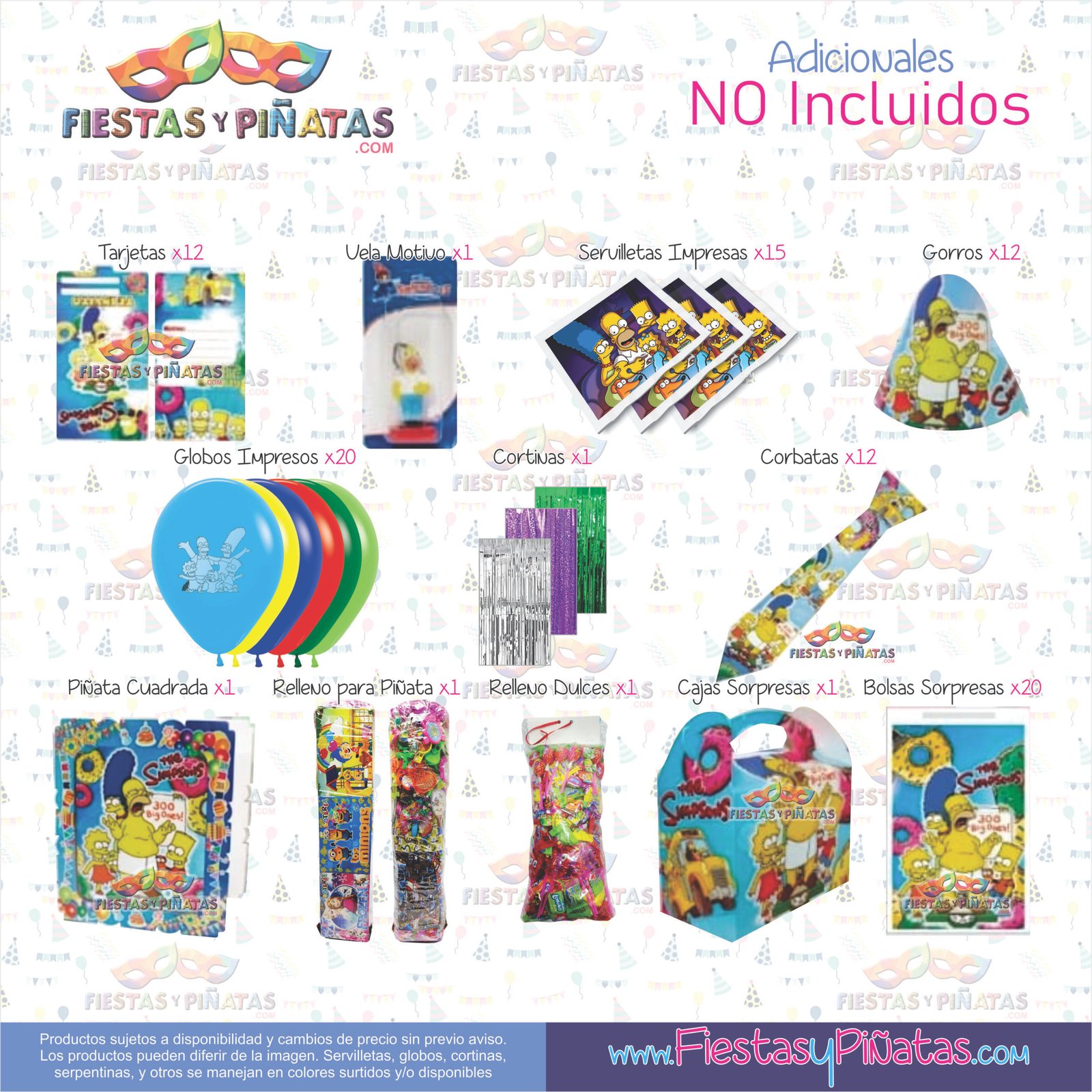 KIT CUMPLEAÑOS LOS SIMPSONS – DECORACIÓN FIESTAS Y PIÑATAS – 11 ACCESORIOS