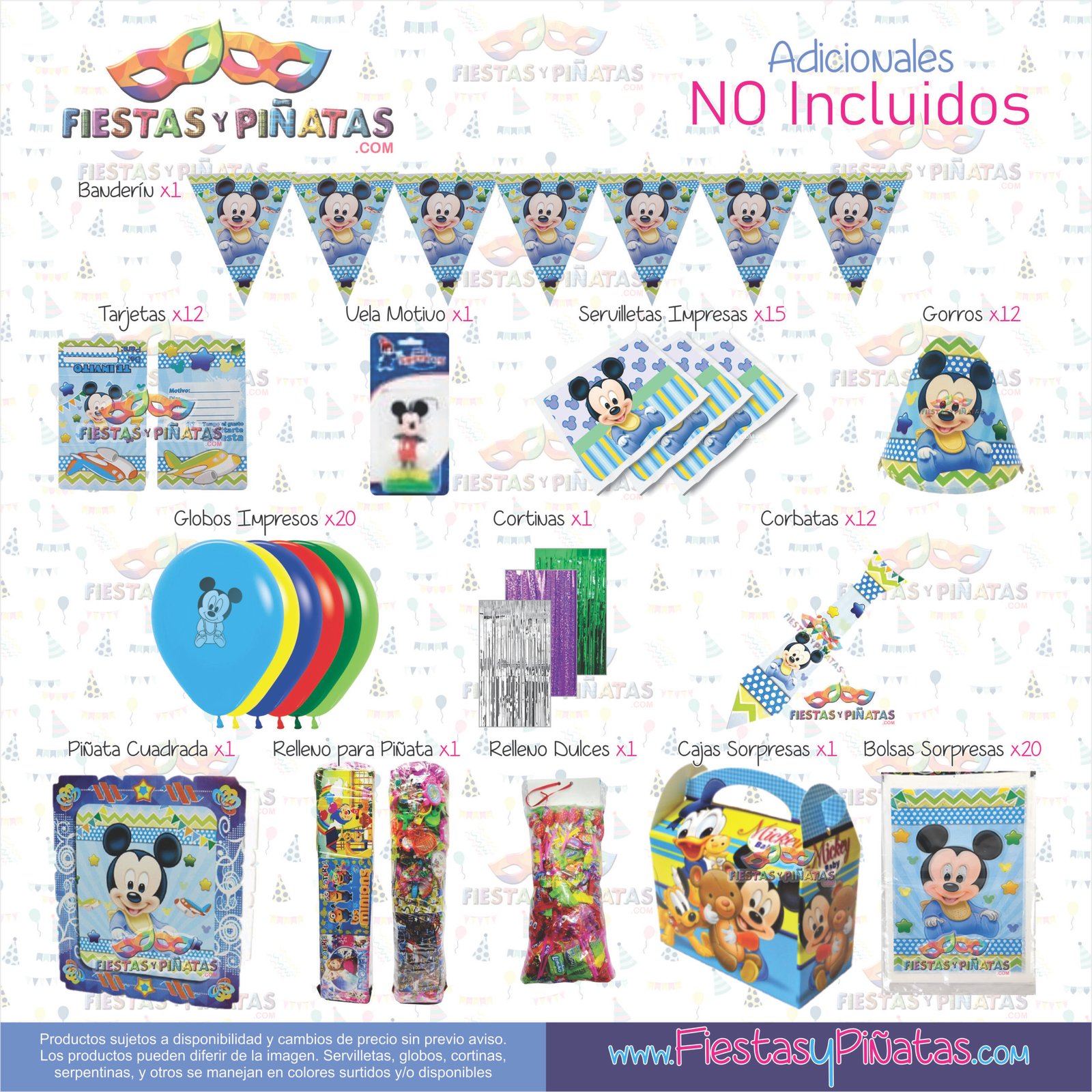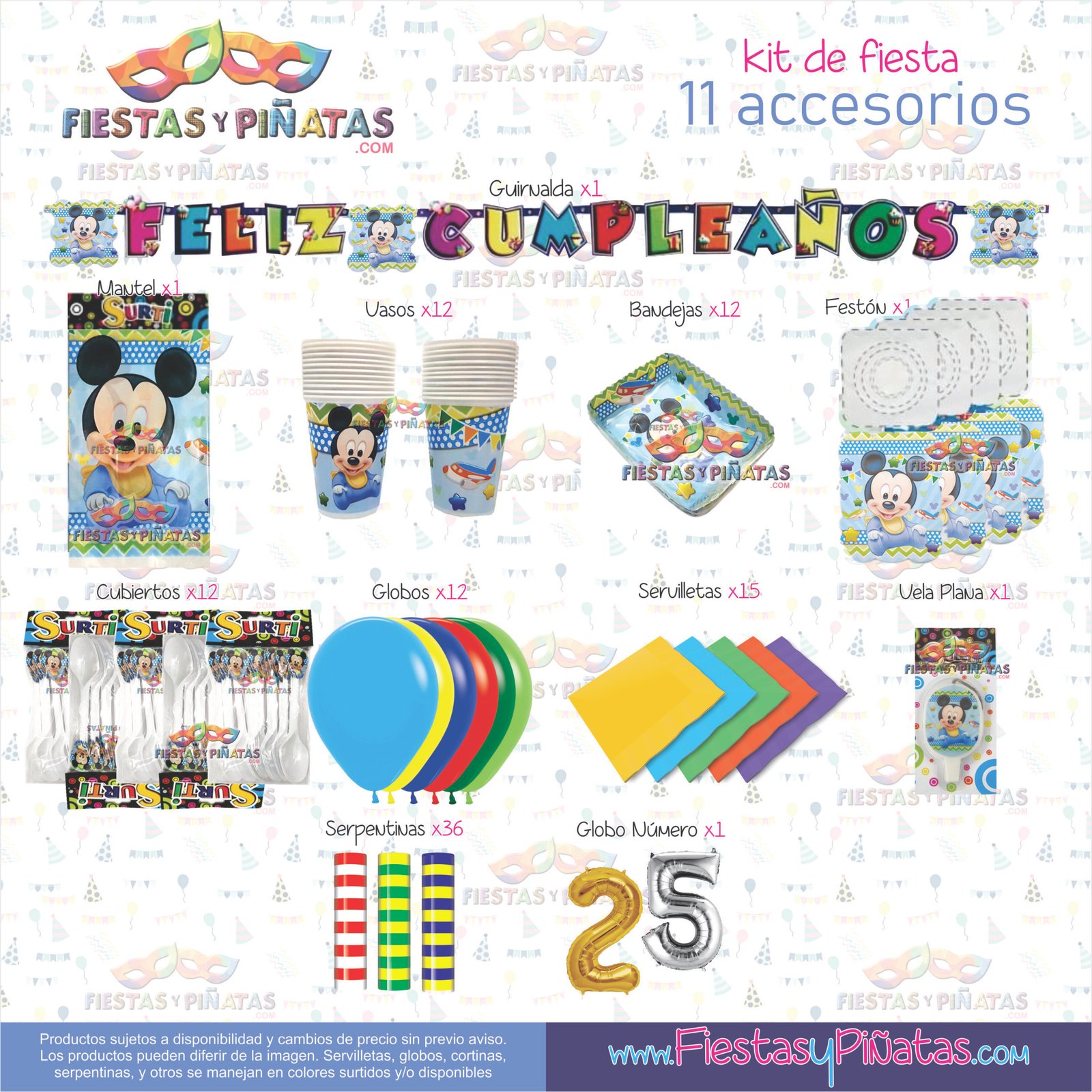 KIT CUMPLEAÑOS MICKEY BEBE– DECORACIÓN FIESTAS Y PIÑATAS – 11 ACCESORIOS