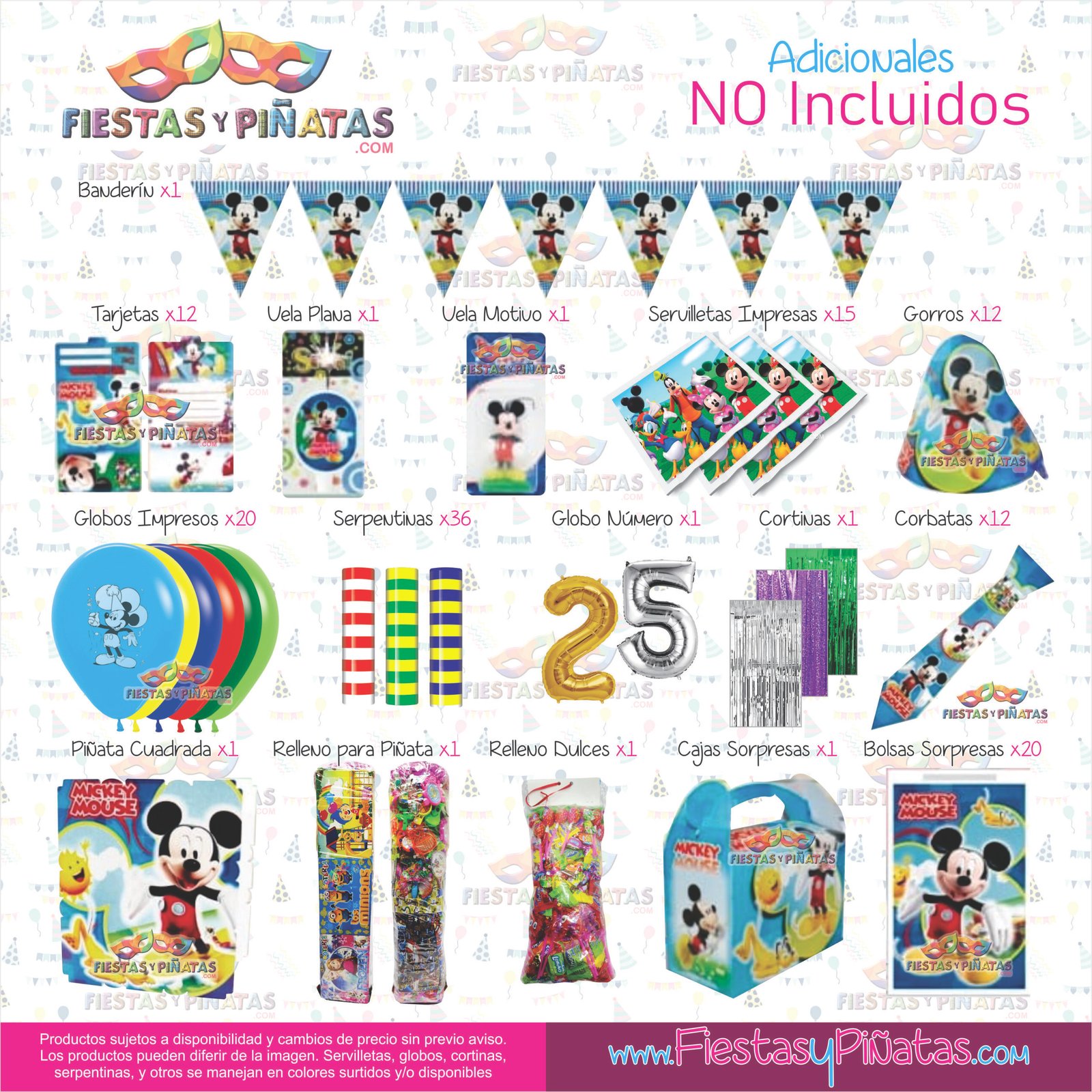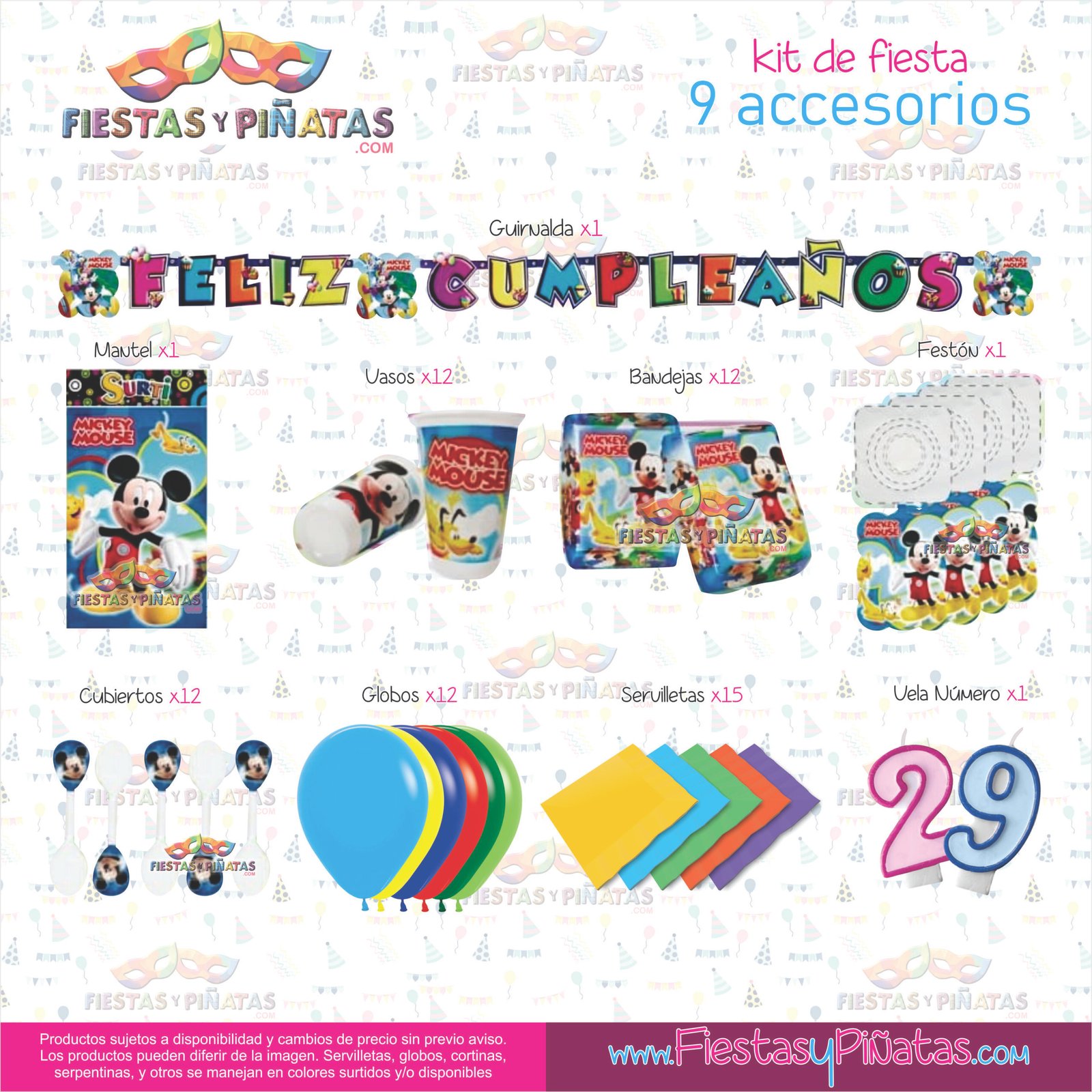 KIT CUMPLEAÑOS MICKEY MOUSE– DECORACIÓN FIESTAS Y PIÑATAS – 9 ACCESORIOS