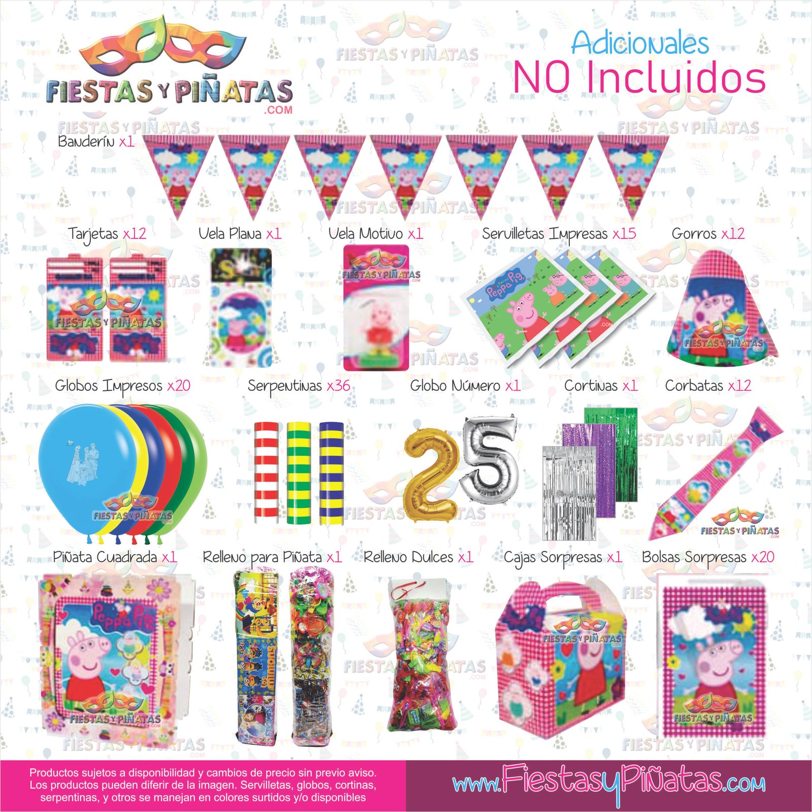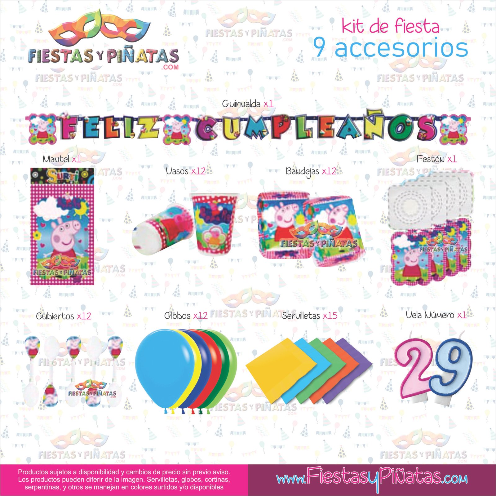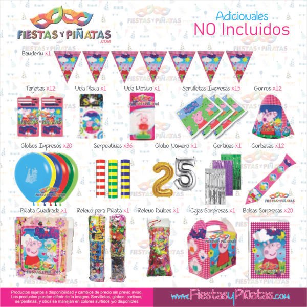 KIT CUMPLEAÑOS PEPPA PIG – DECORACIÓN FIESTAS Y PIÑATAS – 9 ACCESORIOS