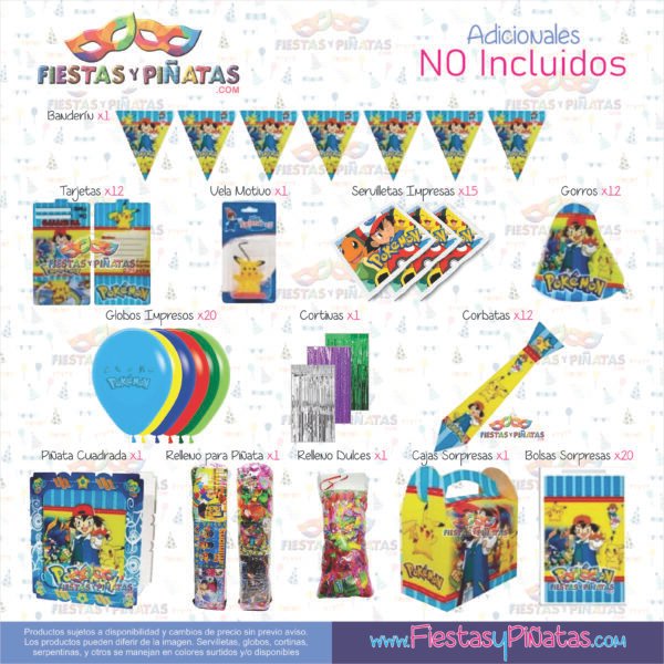 KIT CUMPLEAÑOS POKEMON – DECORACIÓN FIESTAS Y PIÑATAS – 11 ACCESORIOS