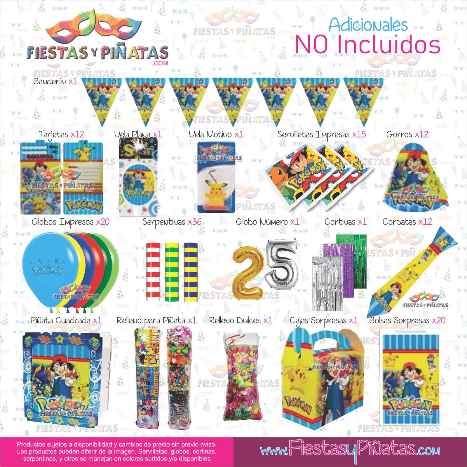 KIT CUMPLEAÑOS POKEMON – DECORACIÓN FIESTAS Y PIÑATAS – 9 ACCESORIOS