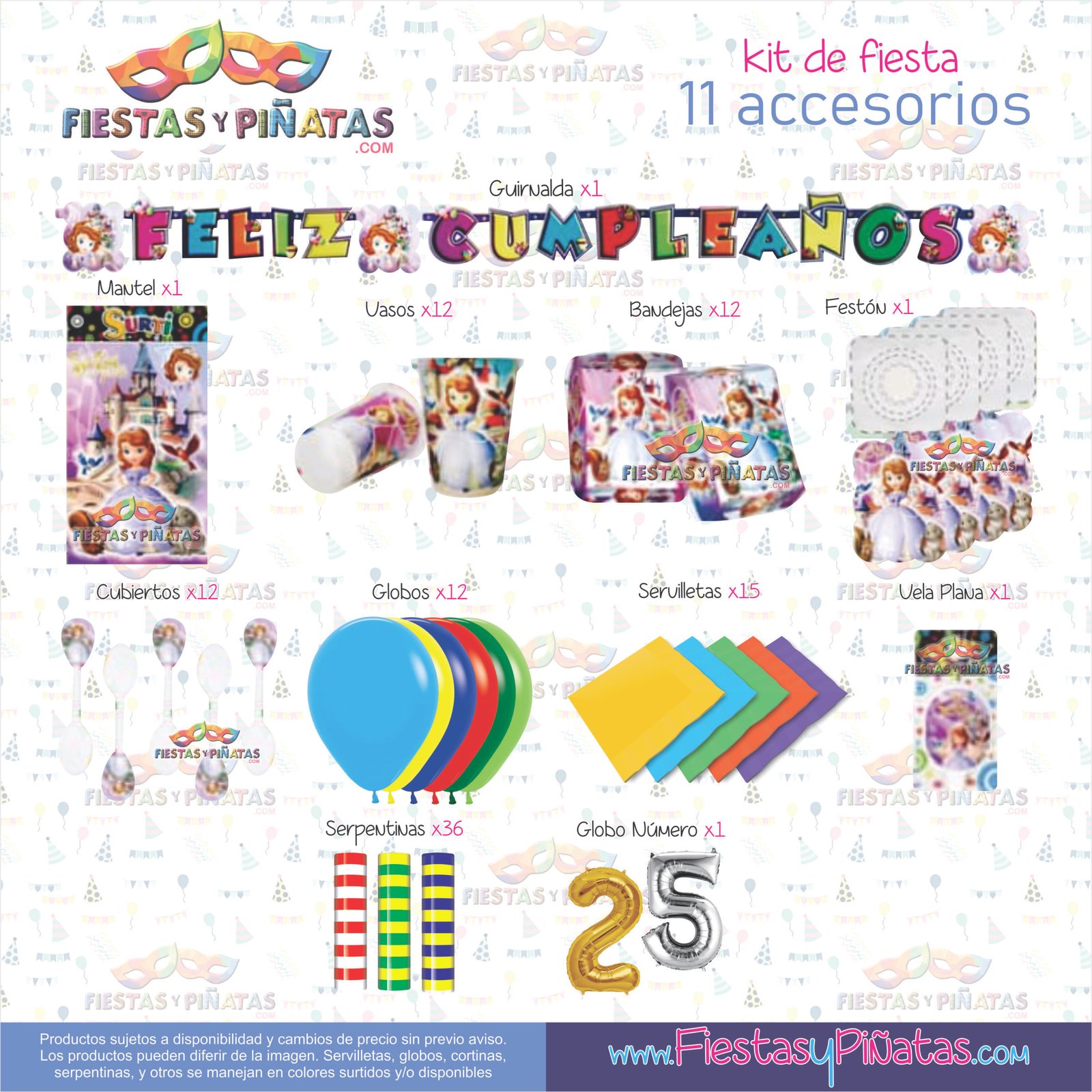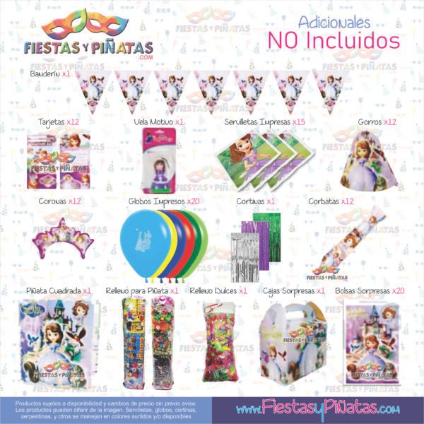KIT CUMPLEAÑOS PRINCESA SOFIA – DECORACIÓN FIESTAS Y PIÑATAS – 11 ACCESORIOS
