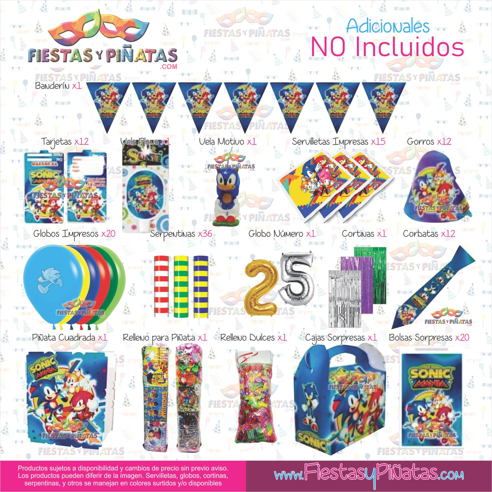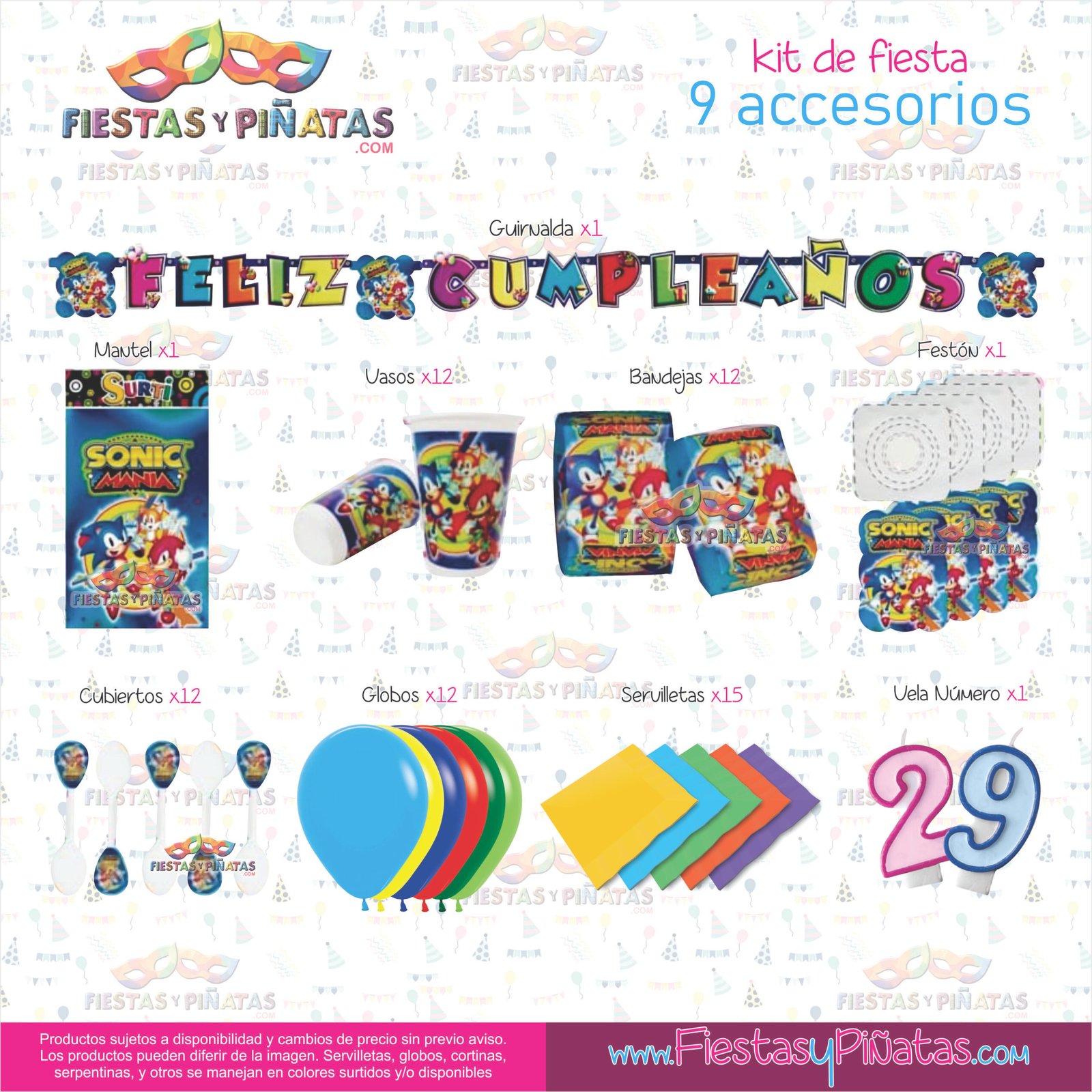KIT CUMPLEAÑOS SONIC – DECORACIÓN FIESTAS Y PIÑATAS – 9 ACCESORIOS