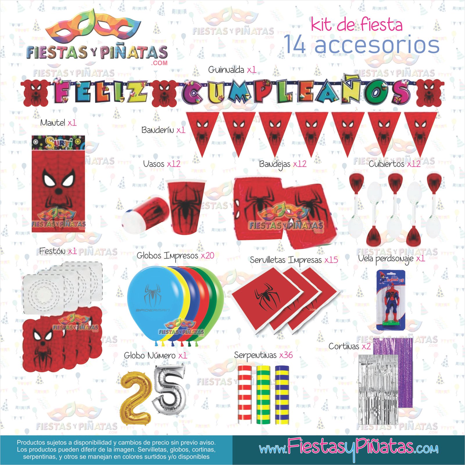 KIT CUMPLEAÑOS SPIDERMAN ESCUDO – DECORACIÓN FIESTAS Y PIÑATAS – 14 ACCESORIOS (copia)
