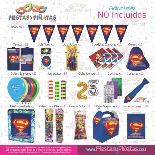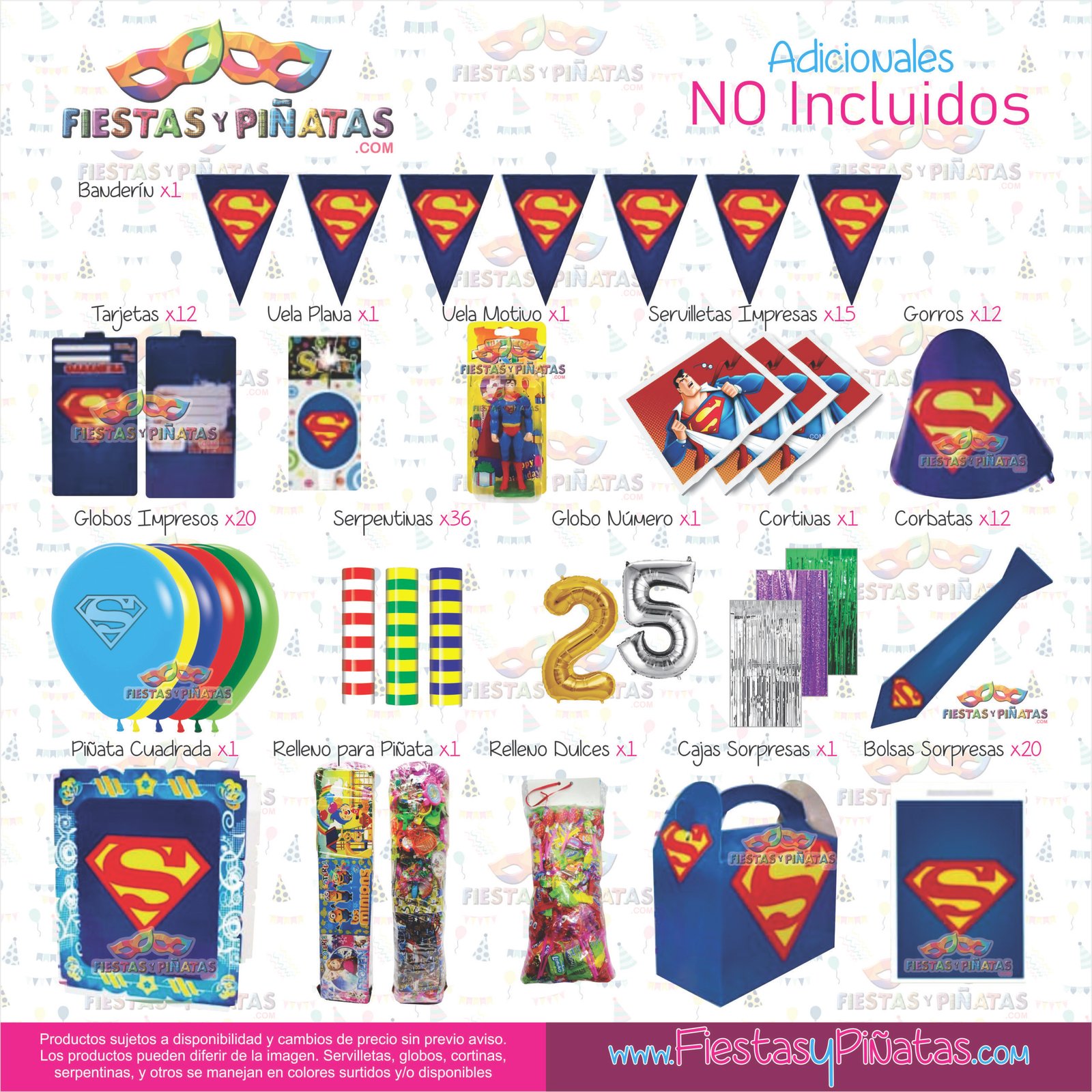 KIT CUMPLEAÑOS SUPERMAN ESCUDO – DECORACIÓN FIESTAS Y PIÑATAS – 9 ACCESORIOS