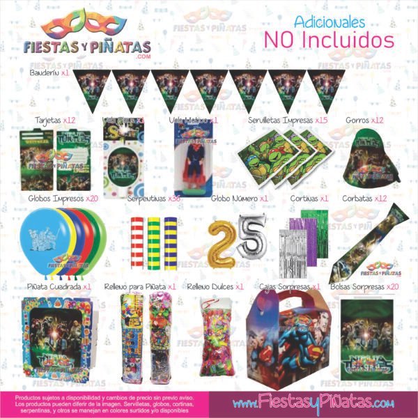 KIT CUMPLEAÑOS TORTUGAS NINJA – DECORACIÓN FIESTAS Y PIÑATAS – 9 ACCESORIOS