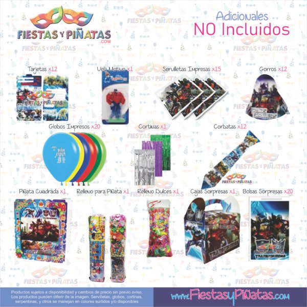 KIT CUMPLEAÑOS TRANSFORMERS – DECORACIÓN FIESTAS Y PIÑATAS – 11 ACCESORIOS