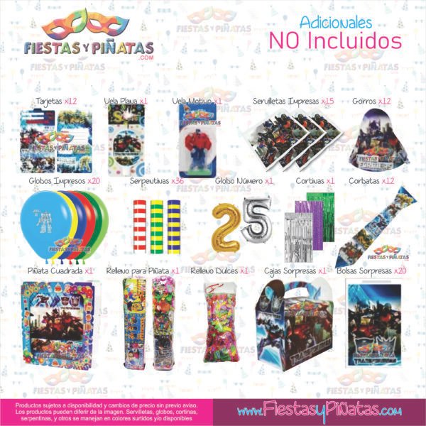 KIT CUMPLEAÑOS TRANSFORMERS – DECORACIÓN FIESTAS Y PIÑATAS – 9 ACCESORIOS