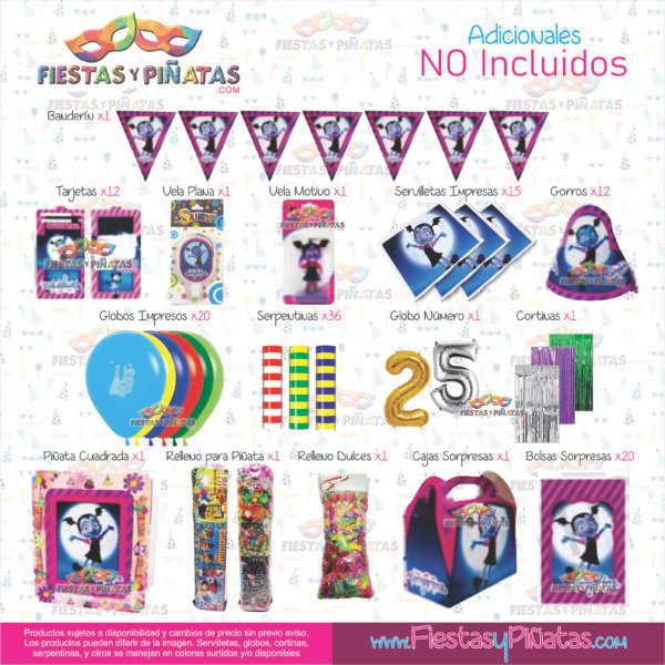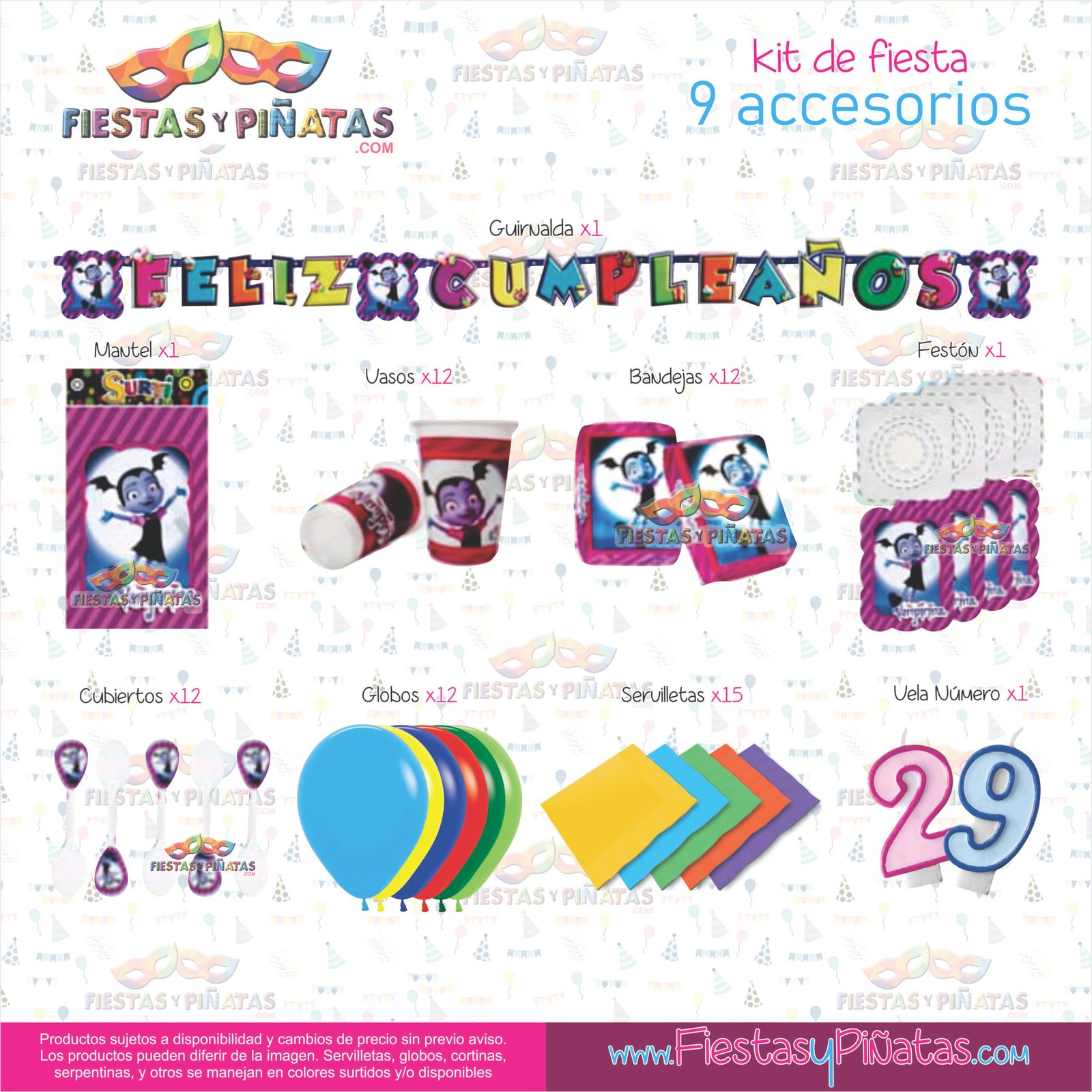 KIT CUMPLEAÑOS VAMPIRINA – DECORACIÓN FIESTAS Y PIÑATAS – 9 ACCESORIOS