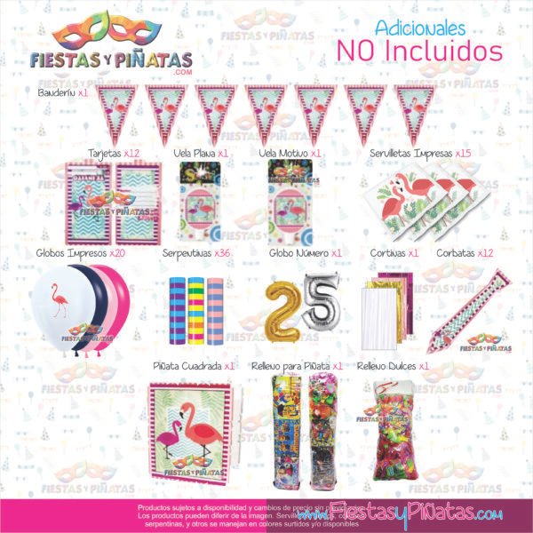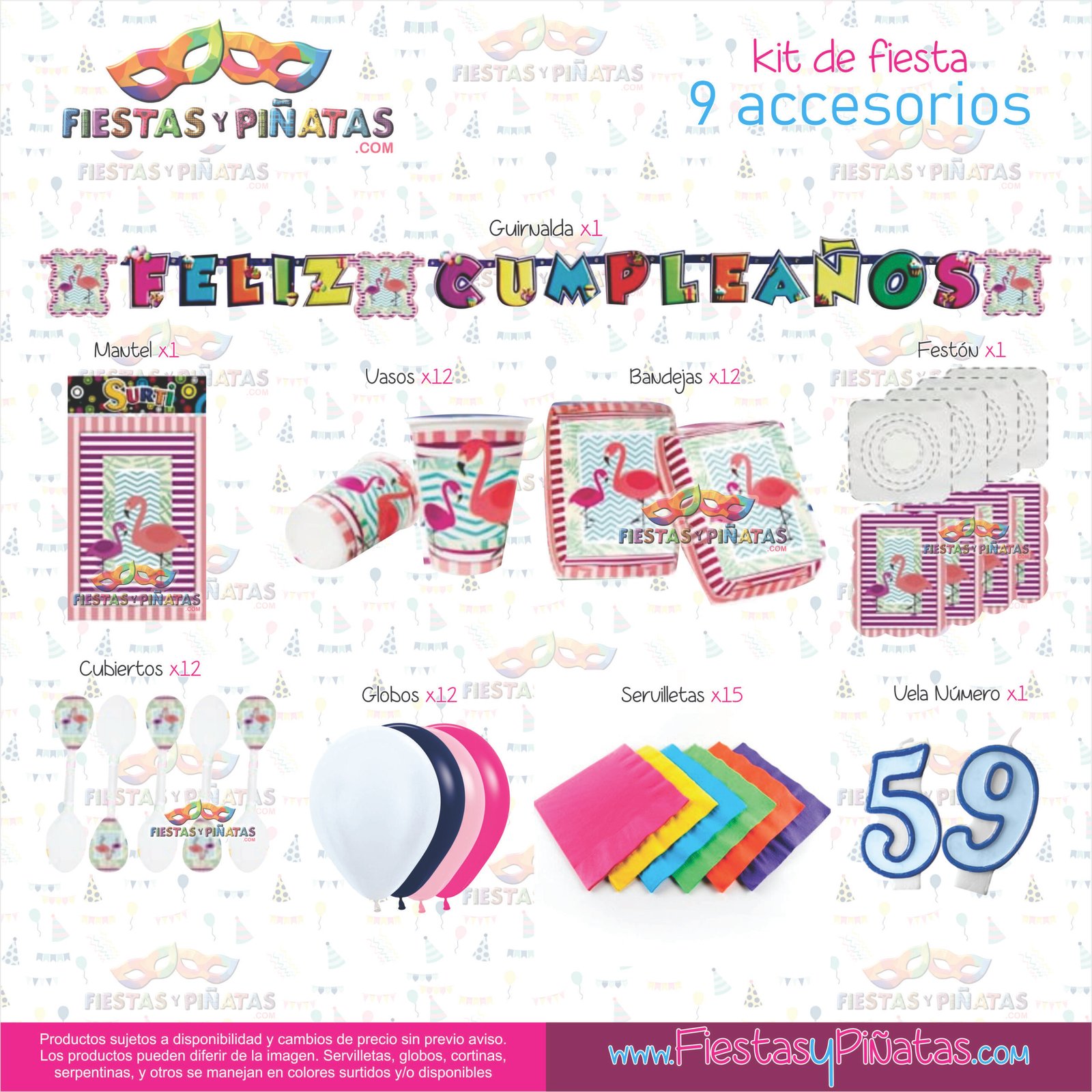 KIT DE CUMPLEAÑOS DECORACIÓN FLAMINGO PARA FIESTAS 9 ACCESORIOS