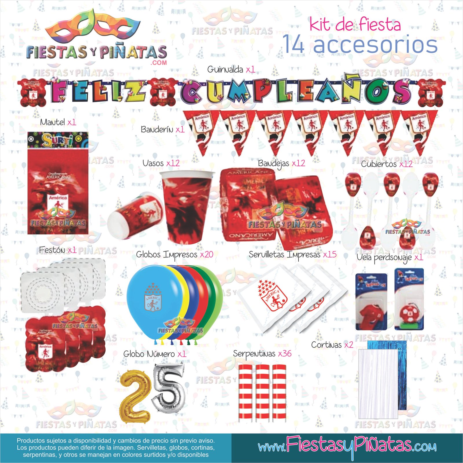 KIT DE CUMPLEAÑOS DECORACIÓN FUTBÓL AMERICA DE CALÍ PARA FIESTAS 14 ACCESORIOS