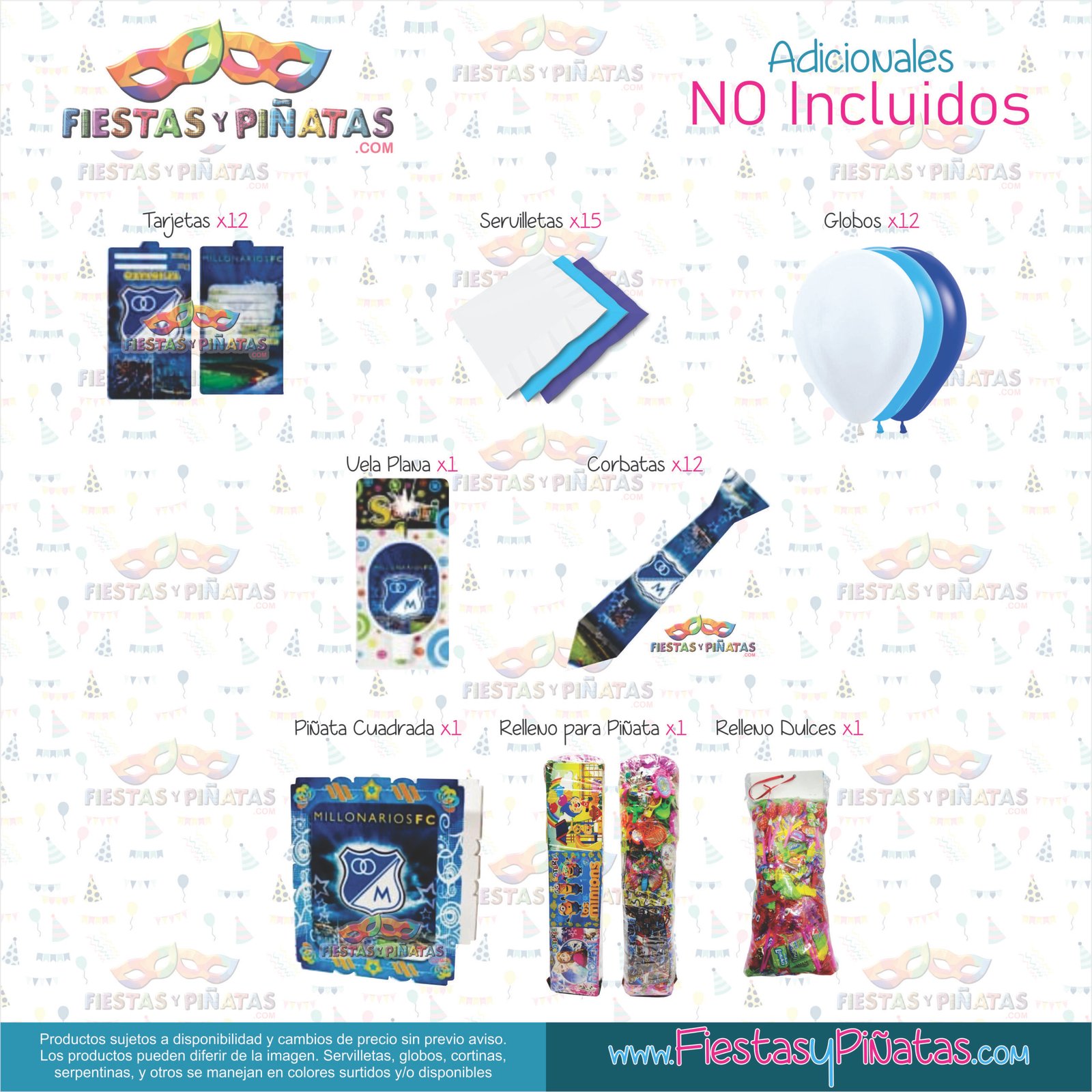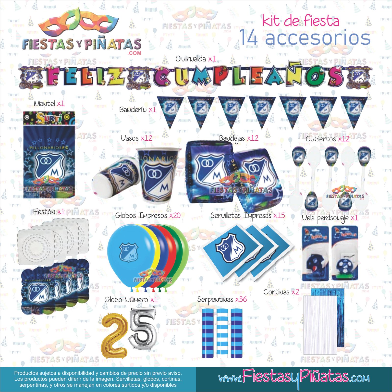 KIT CUMPLEAÑOS DECORACIÓN FUTBÓL MILLONARIOS PARA FIESTAS 14 ACCESORIOS