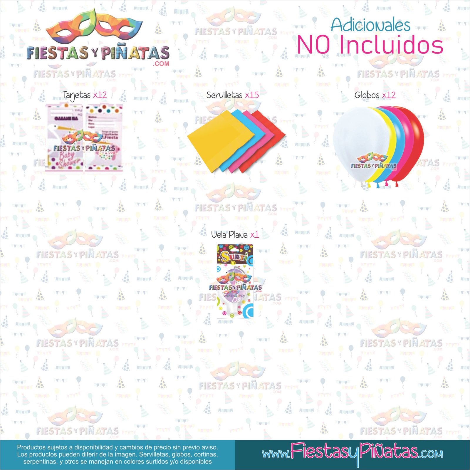 | 1 | Servilletas temáticas o colores fiesta x 15 unidades |
