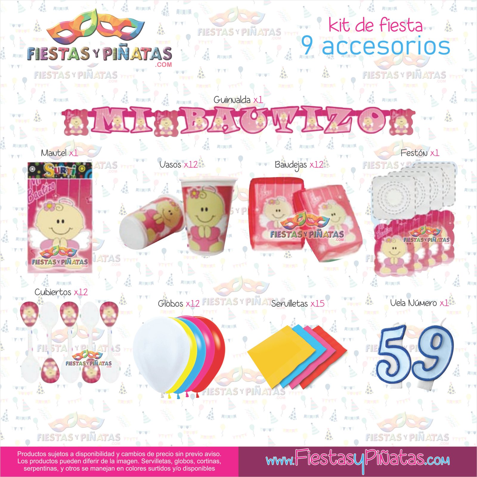 1 Mantel temático x unidad 1 Cucharitas temáticas x 20 unidades 1 Vasos temáticos x 12 unidades 1 Bandejas torta temáticas x 12 unidades 1 Vela magica de motivo plana 1 Servilletas temáticas o colores fiesta x 15 unidades 1 Guirnalda letrero «Mi temática» 1 Festón (acordeón papel seda) temático 1 Banderín (triángulos) temático 1 Globos temáticos o surtidos r9 x 20 1 Serpentina colores surtidos x 36 unidades 1 Globo metalizado número 0-9 dorado o plateado 2 Cortinas (color a escoger) Puedes solicitar tu kit así como está utilizando el botón