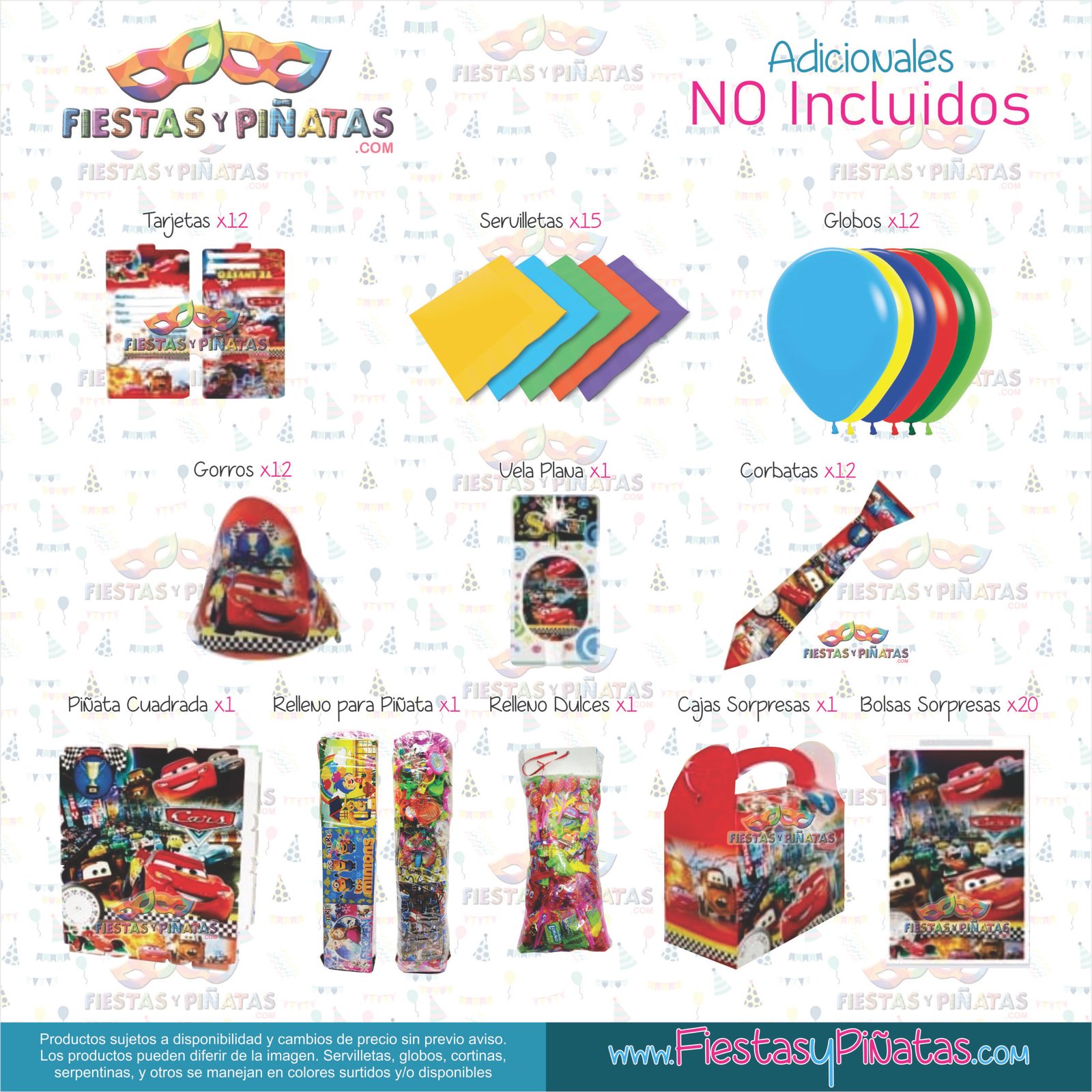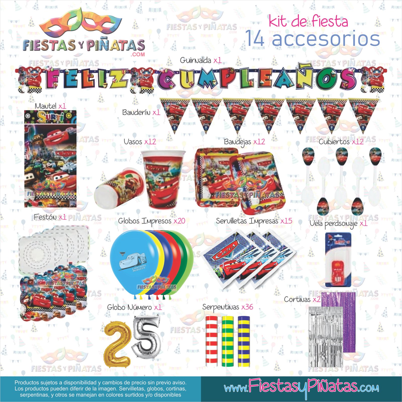 KIT CUMPLEAÑOS CARS – DECORACIÓN FIESTAS Y PIÑATAS – 14 ACCESORIOS