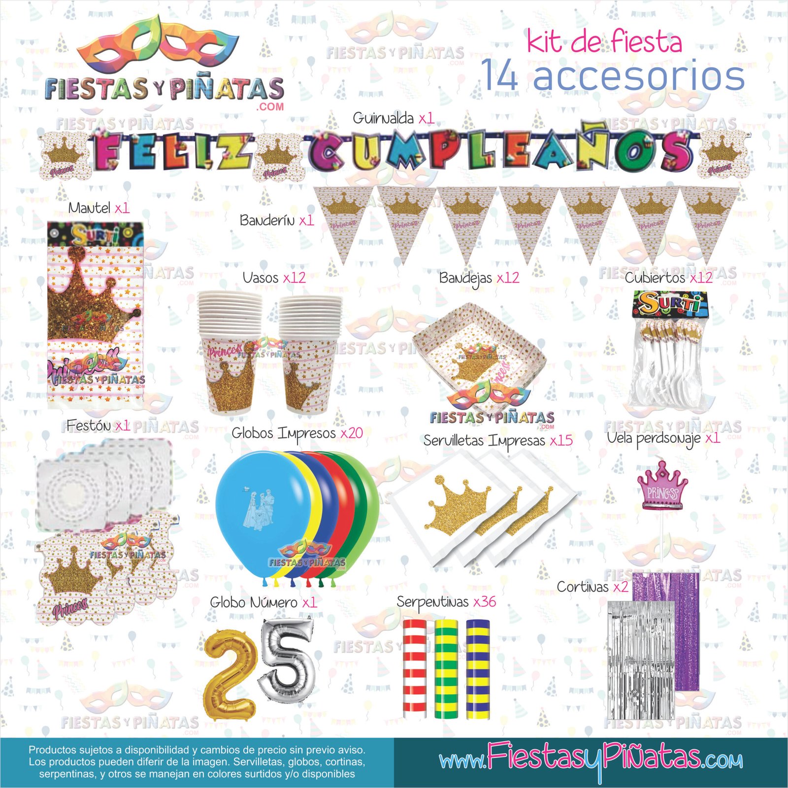 KIT CORONA DE PRINCESAS – DECORACIÓN FIESTAS Y PIÑATAS – 14 ACCESORIOS