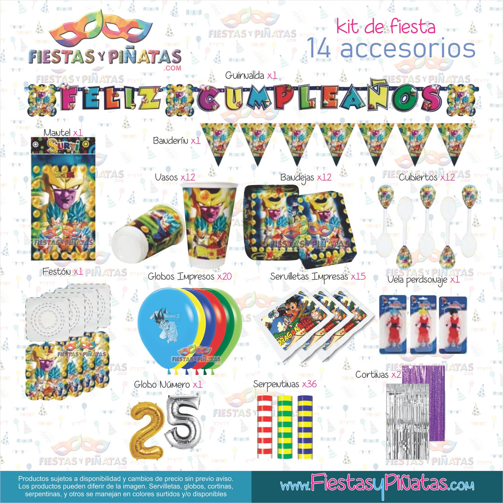 KIT CUMPLEAÑOS DRAGON BALL– DECORACIÓN FIESTAS Y PIÑATAS – 14 ACCESORIOS