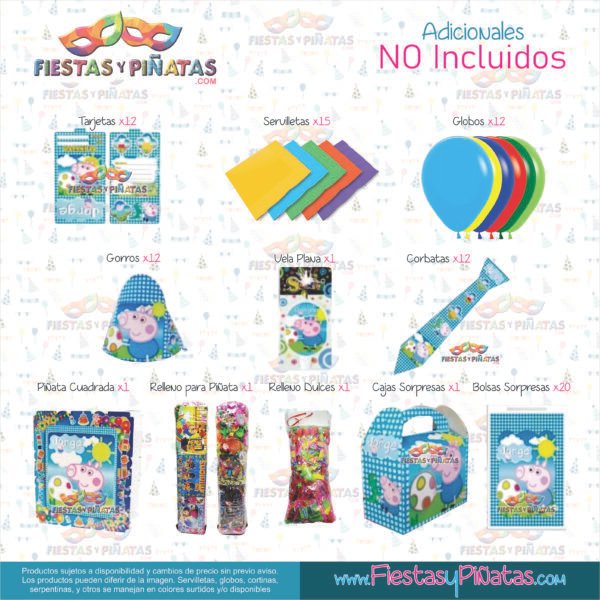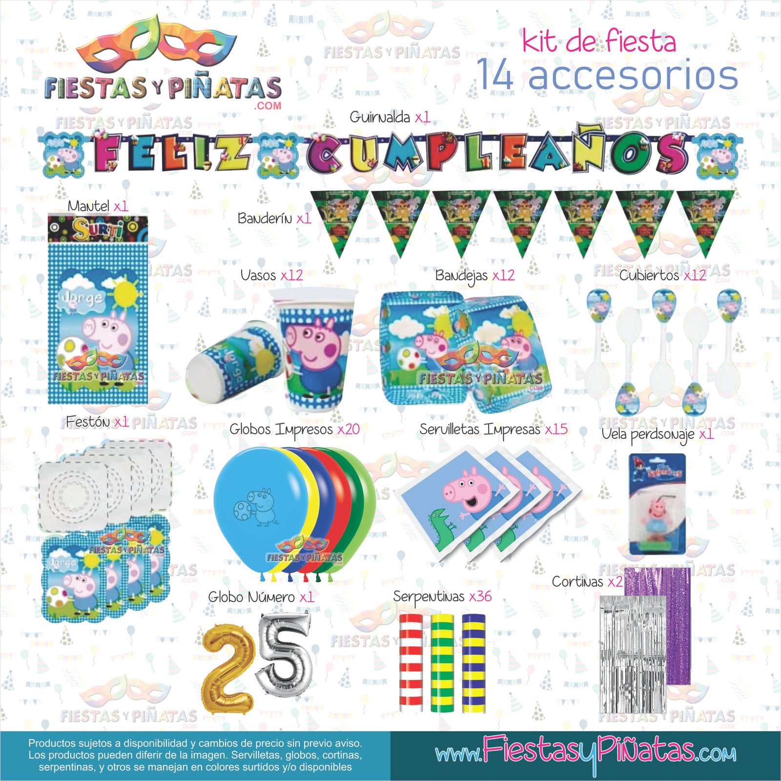 KIT CUMPLEAÑOS GEORGE PEPPA PIG– DECORACIÓN FIESTAS Y PIÑATAS – 14 ACCESORIOS
