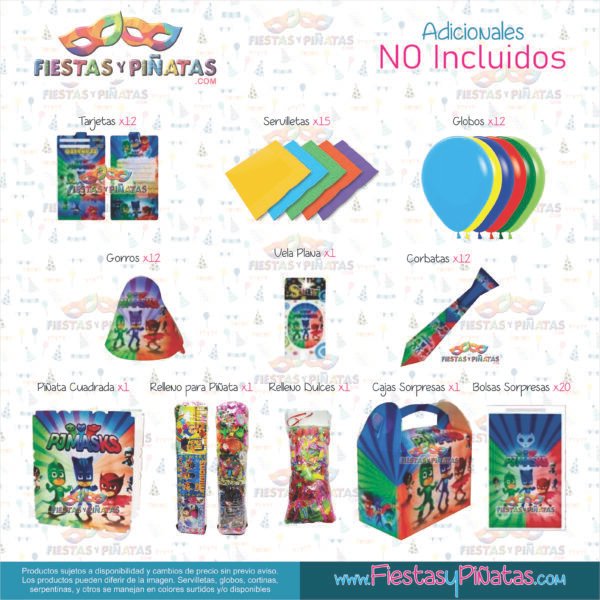 KIT CUMPLEAÑOS HEROES EN PIJAMAS– DECORACIÓN FIESTAS Y PIÑATAS – 14 ACCESORIOS