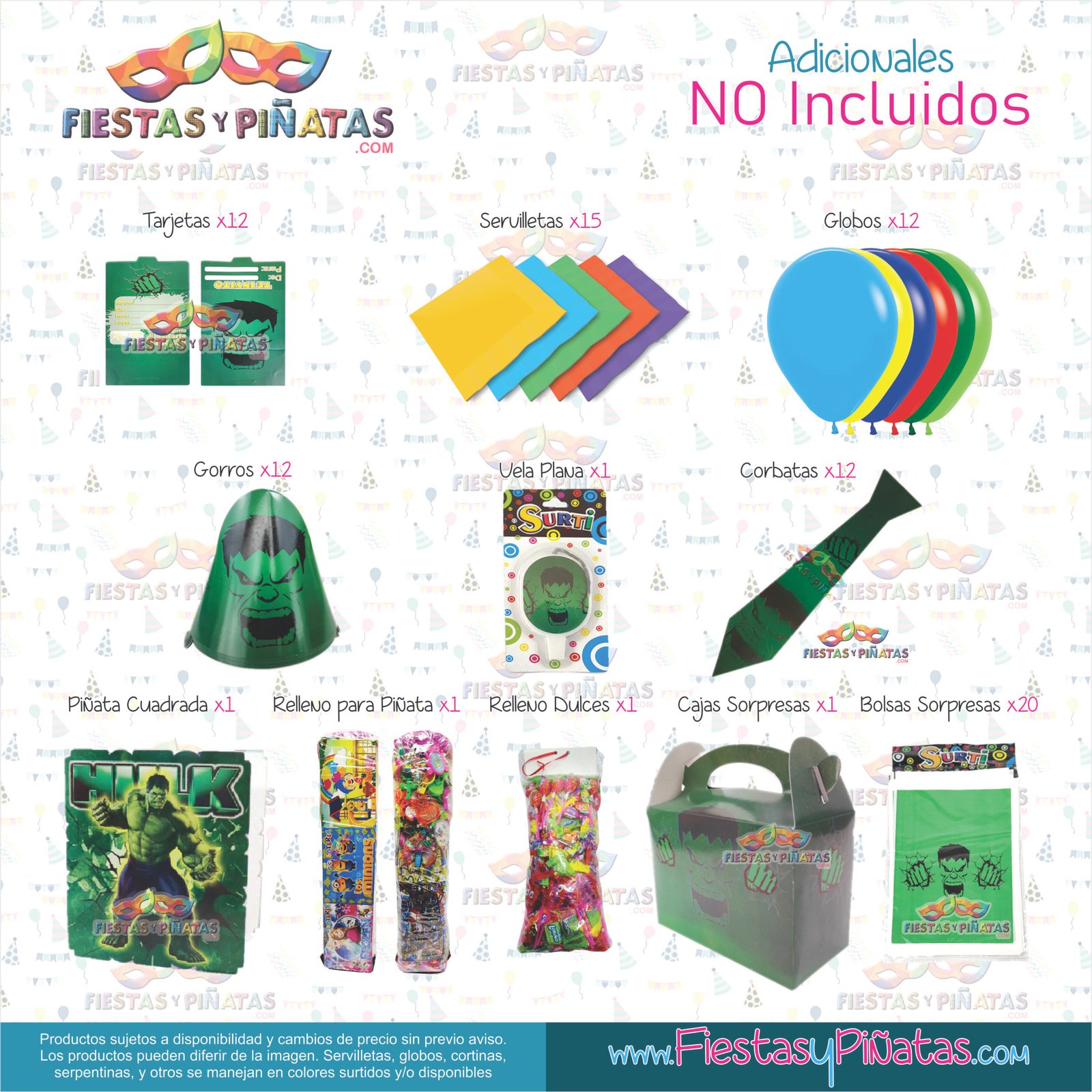 KIT CUMPLEAÑOS HULK– DECORACIÓN FIESTAS Y PIÑATAS – 14 ACCESORIOS