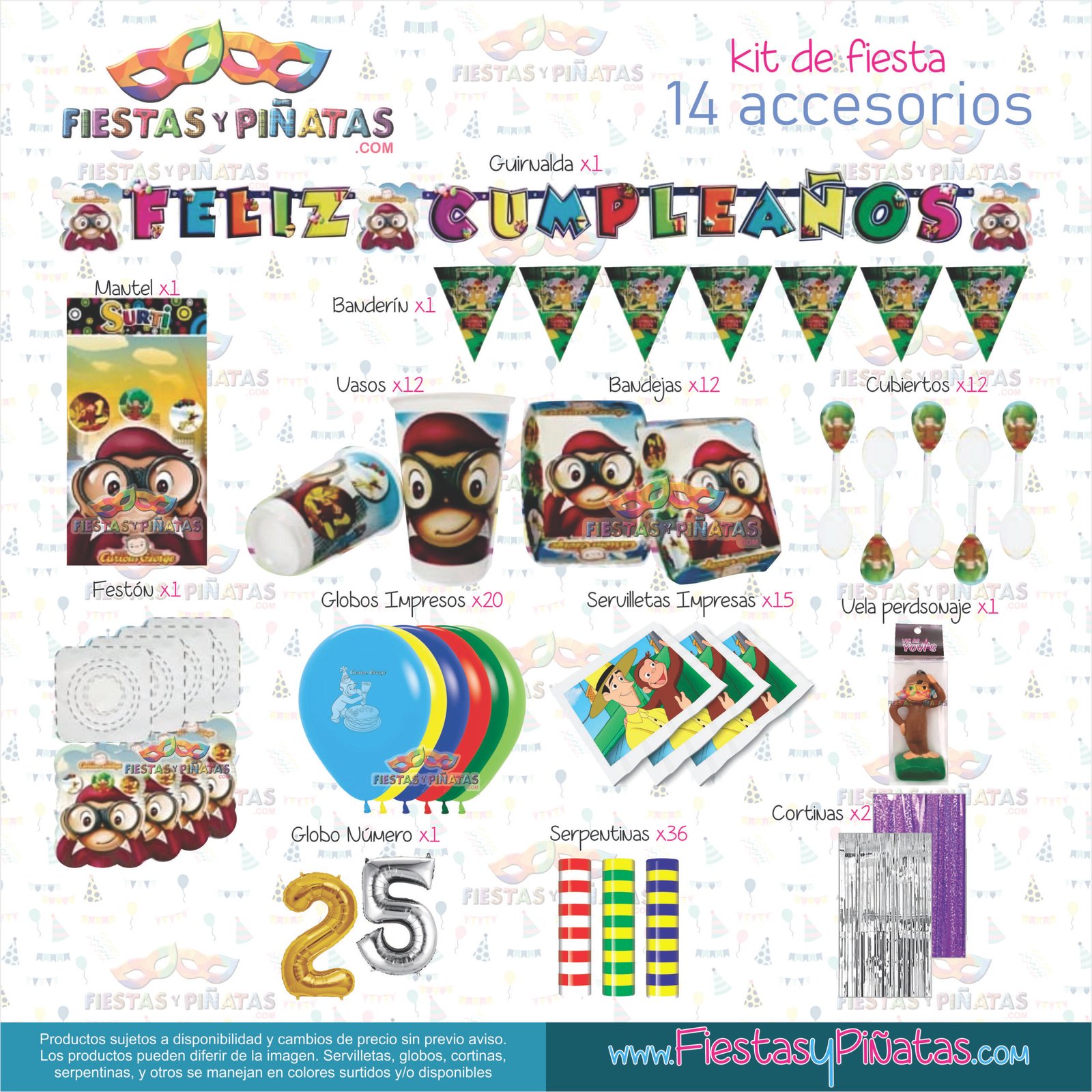KIT CUMPLEAÑOS JORGE EL CURIOSO– DECORACIÓN FIESTAS Y PIÑATAS – 14 ACCESORIOS
