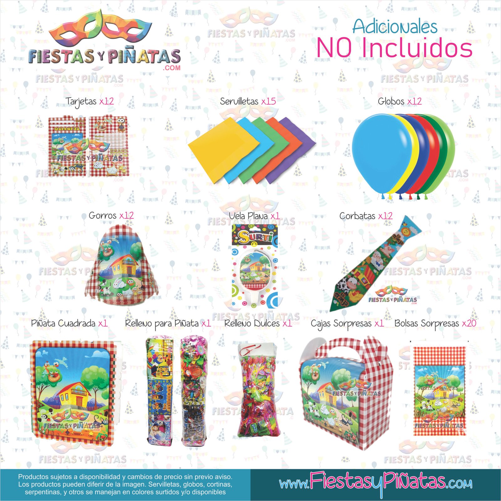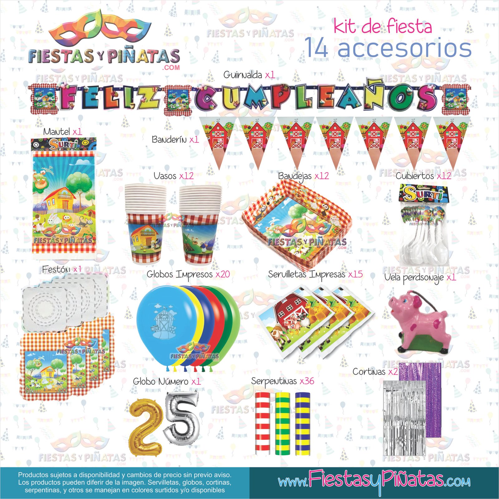 KIT CUMPLEAÑOS LA GRANJA ANIMALES– DECORACIÓN FIESTAS Y PIÑATAS – 14 ACCESORIOS