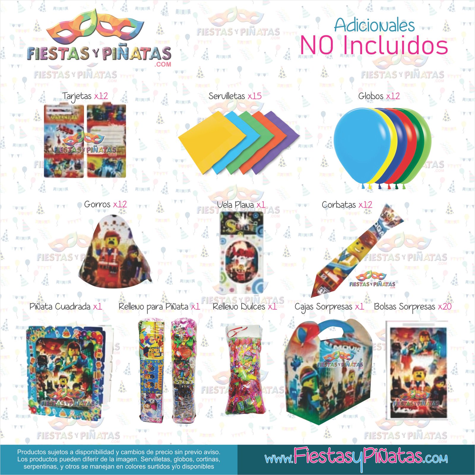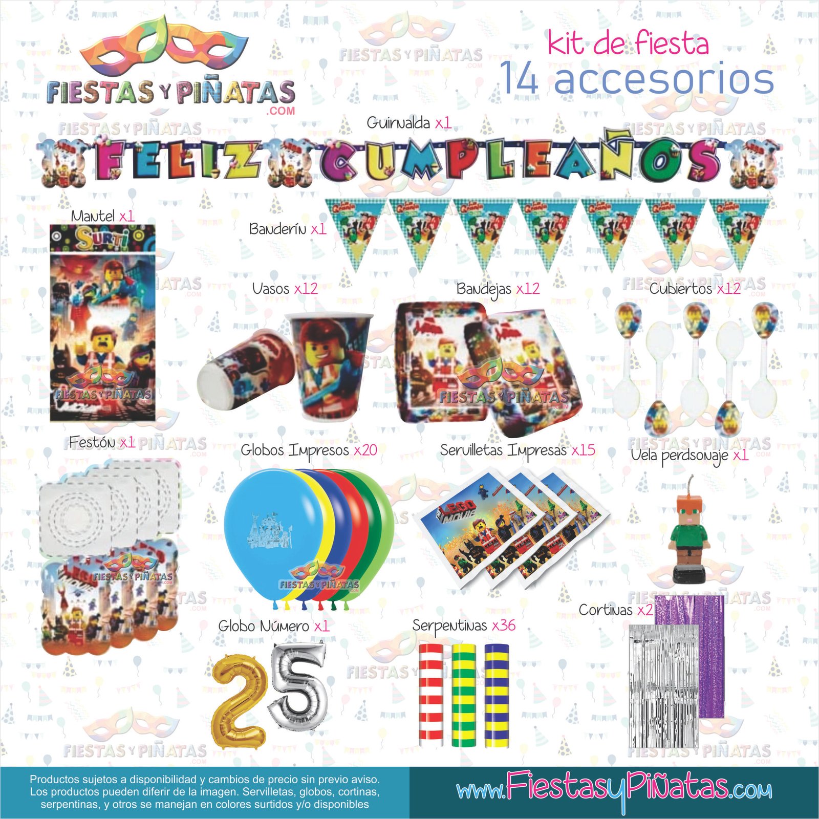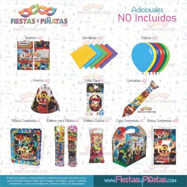 KIT CUMPLEAÑOS LEGO MOVIE– DECORACIÓN FIESTAS Y PIÑATAS – 14 ACCESORIOS