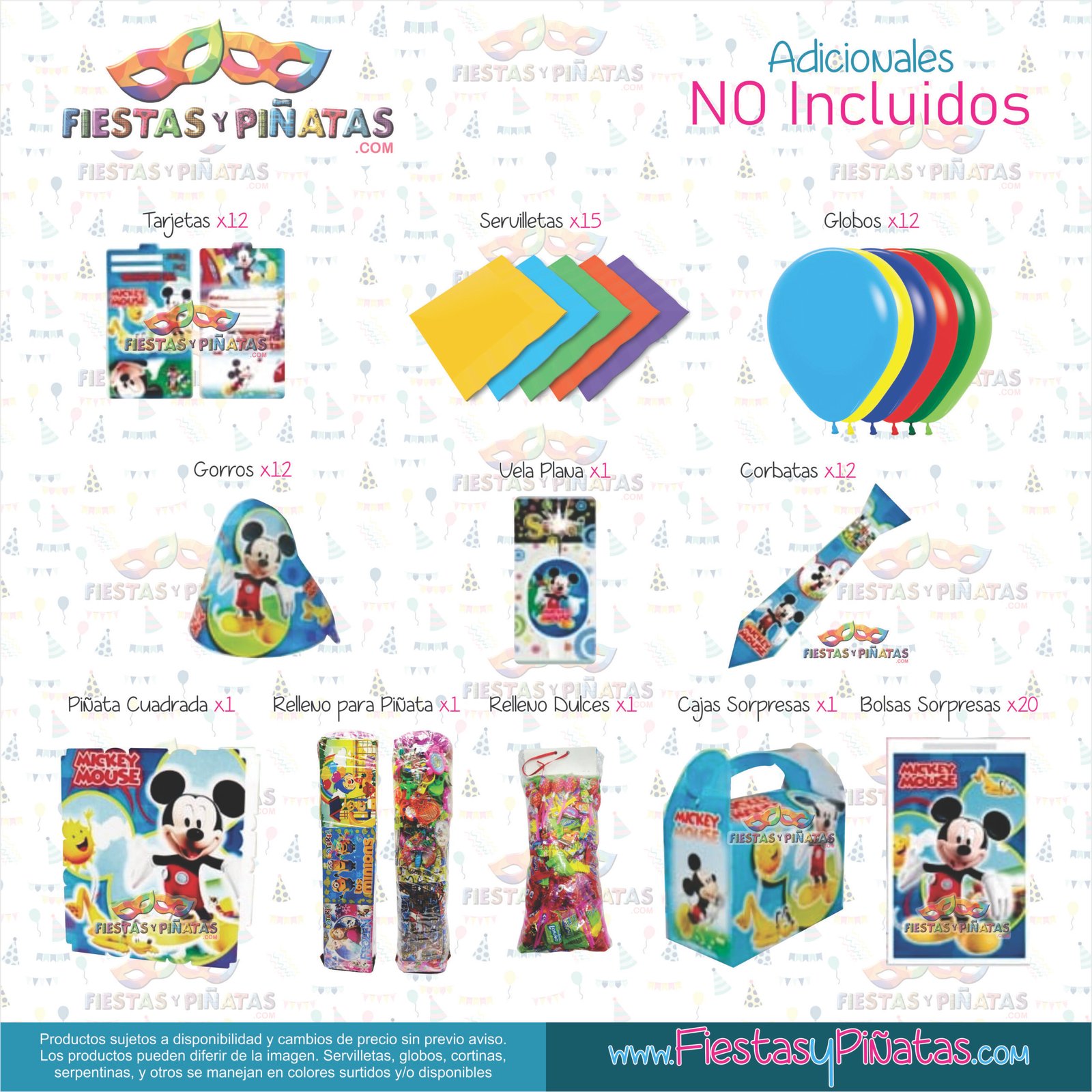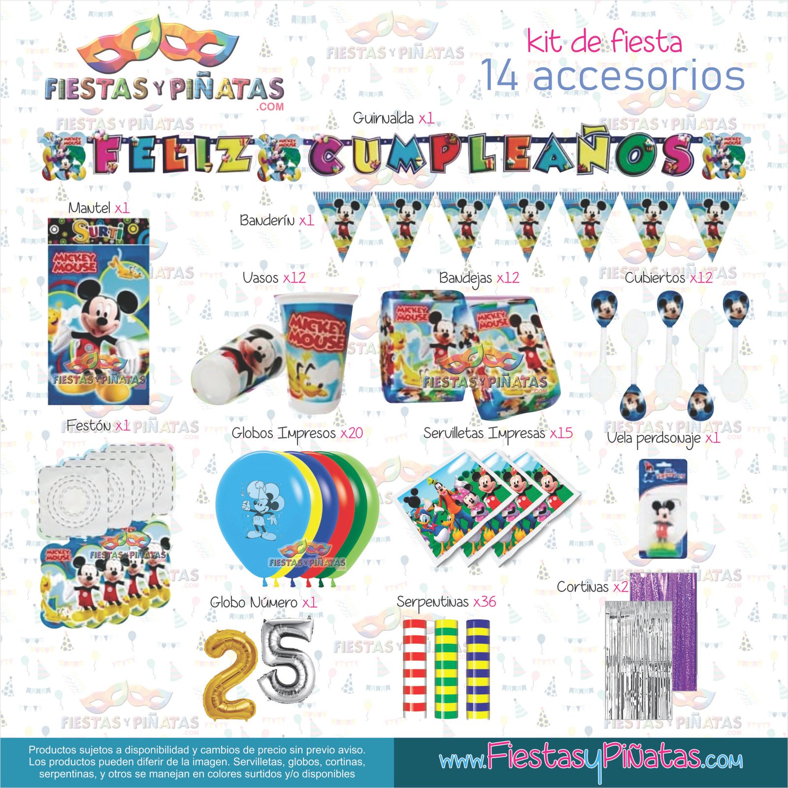 KIT CUMPLEAÑOS MICKEY MOUSE– DECORACIÓN FIESTAS Y PIÑATAS – 14 ACCESORIOS